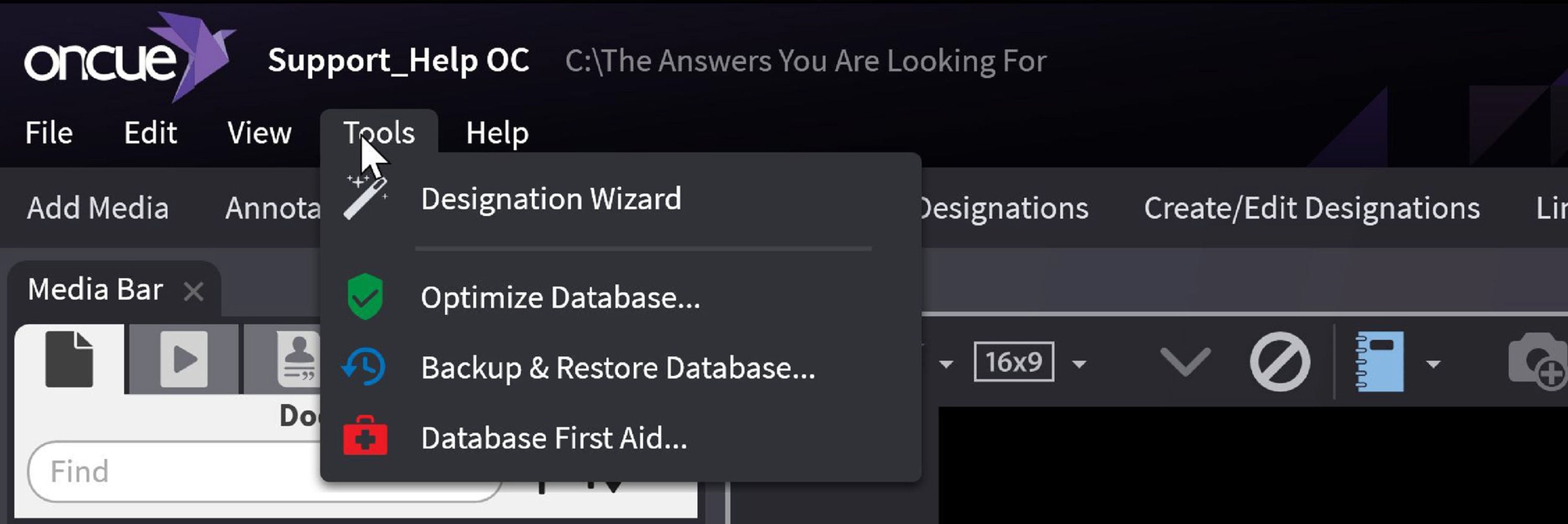 Have you had an unexpected crash or are you getting multiple errors and being told to close OnCue? Run First Aid on your database and correct some errors. Then run a backup to save the fixed database.