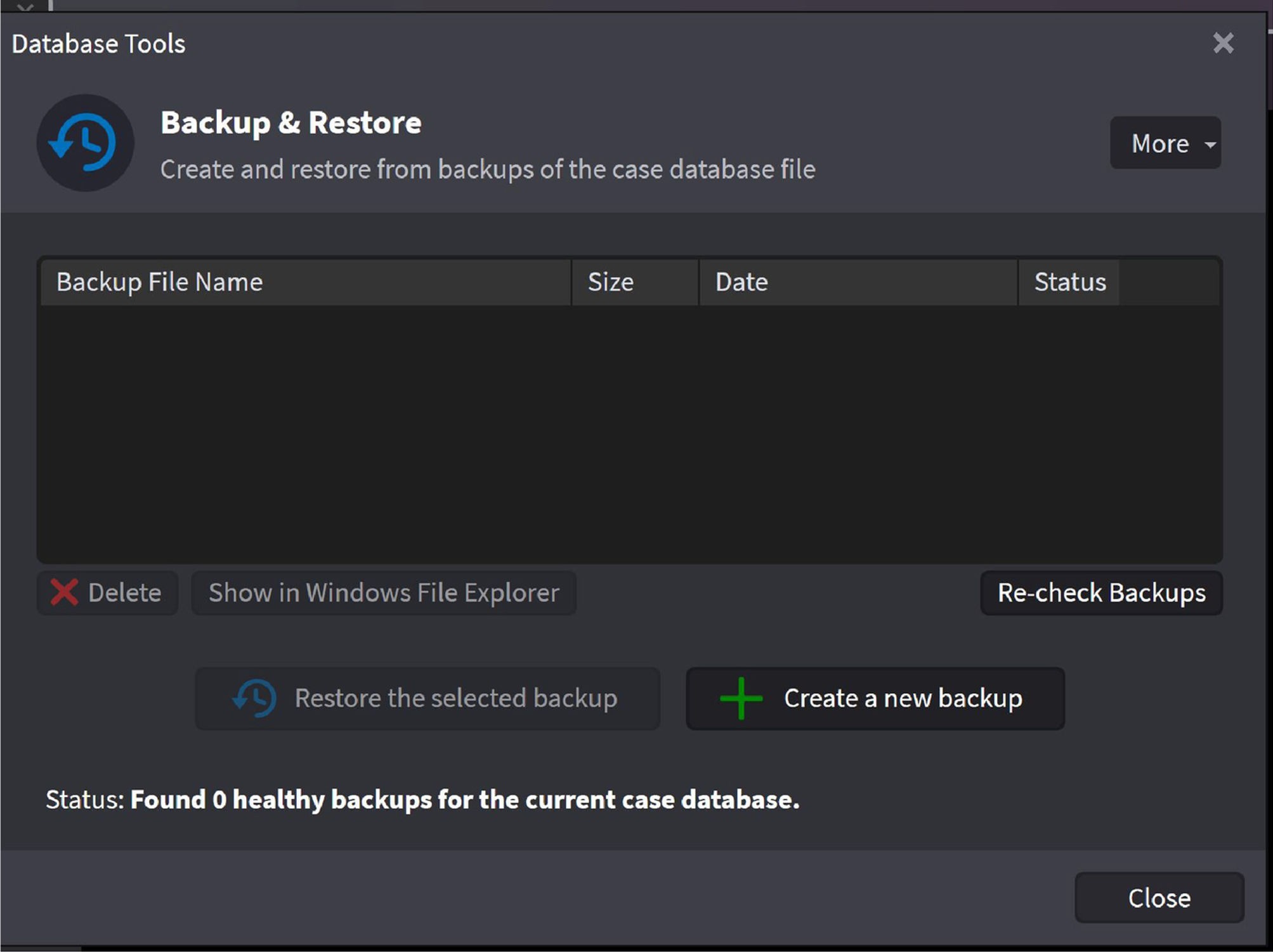 This one is a good idea to use at least once a day and if you are pushing around a lot of data and have a huge case. Create a back-up after doing a lot of work or at the end of the night. If something goes wrong, you can restore your last saved backup.