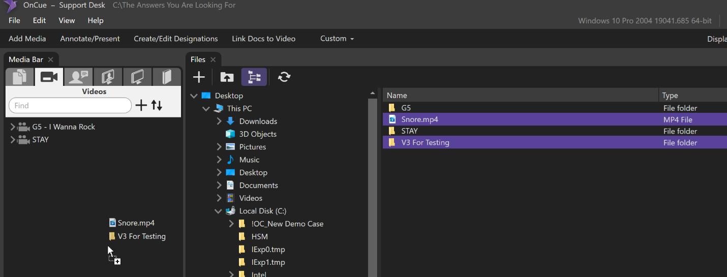 To add these multimedia files to your OnCue database, click on the Add Media tab in the Workflow Ribbon and navigate to your multimedia/audiovisual file in OnCue’s File Explorer window. Left-click and drag the selected file to anywhere on the Media Bar. You can also click the "+" button in the Audiovisuals tab and browse your computer to add the media.