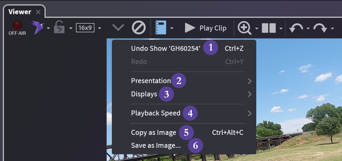 - Copy — Copy the clip and paste into a Notebook or Media Script
