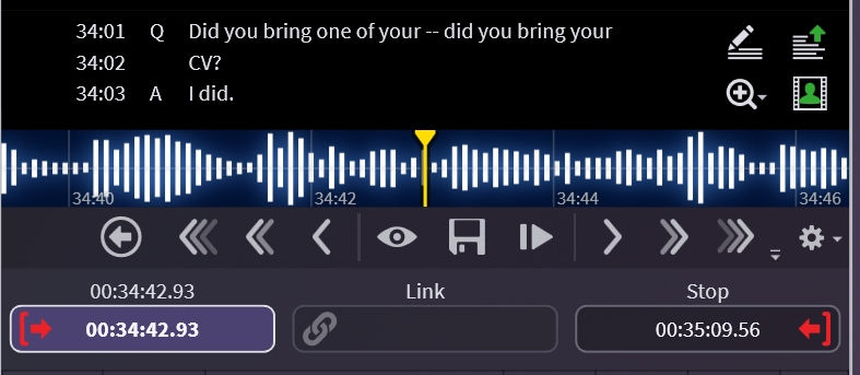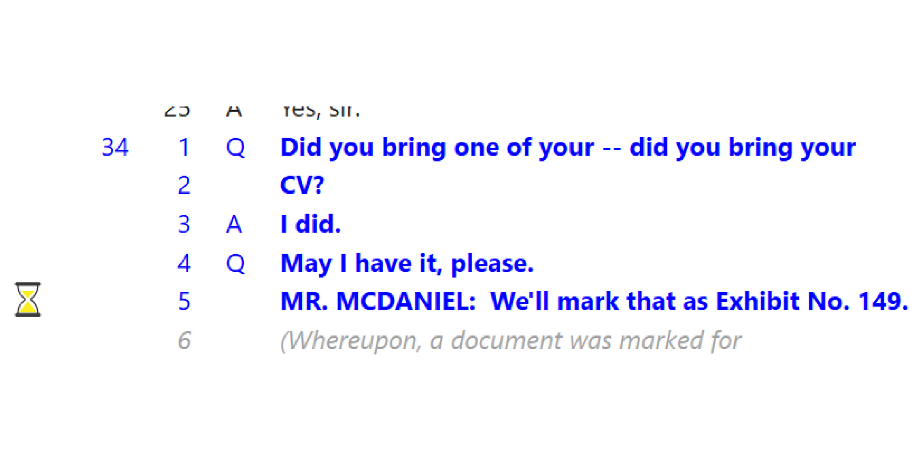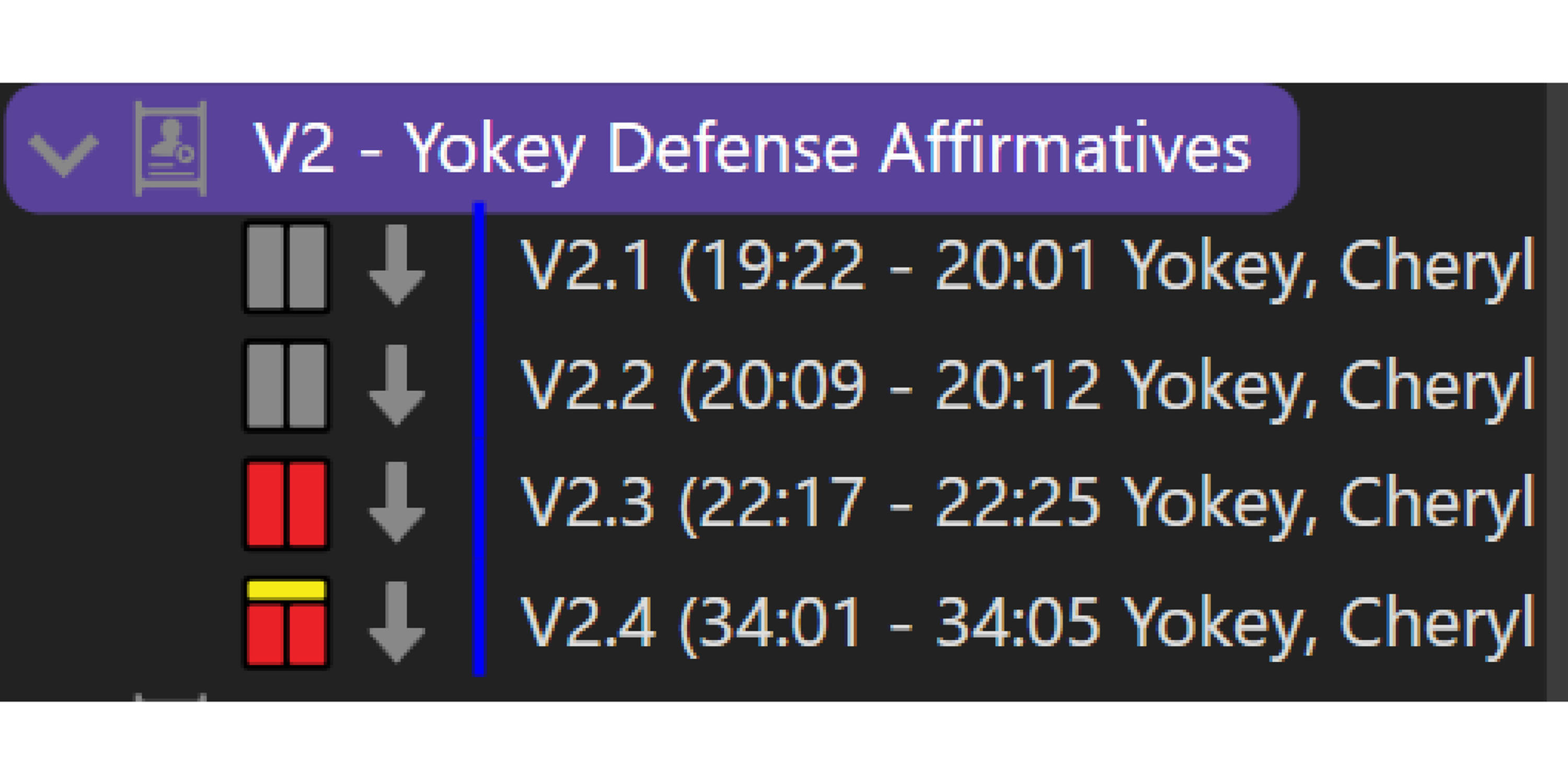 A yellow bar across the top of your designation icon indicates there is a line of testimony that is at least 12 seconds long.