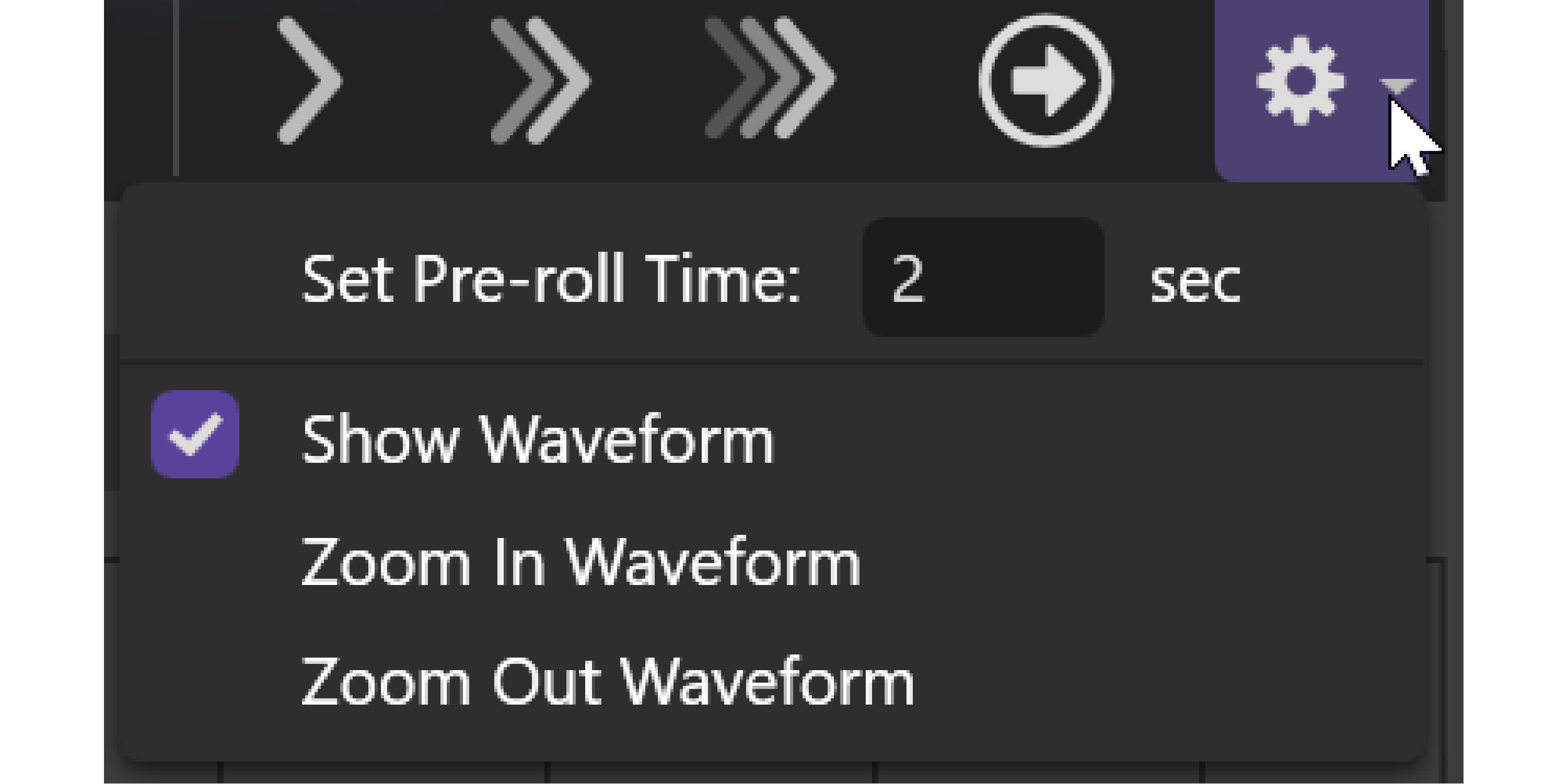 You can also change the 2-second preview or the size of the waveform by clicking on the gear.
