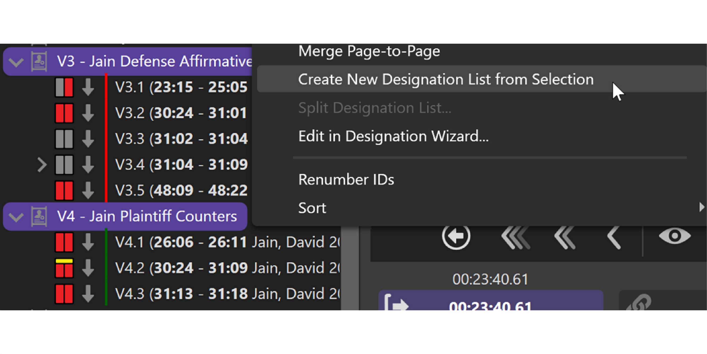 NOTE: You can create designation lists using just the transcript text file if you don't have a video. Reporting and creation is the same. The only difference is in the presenting part. Check this article for more information on displaying designations as text.