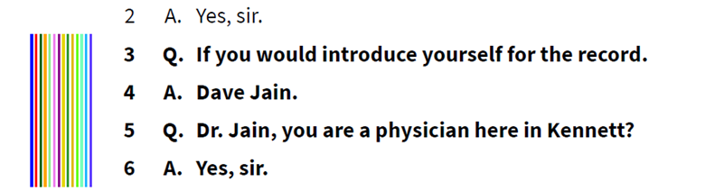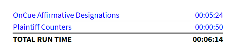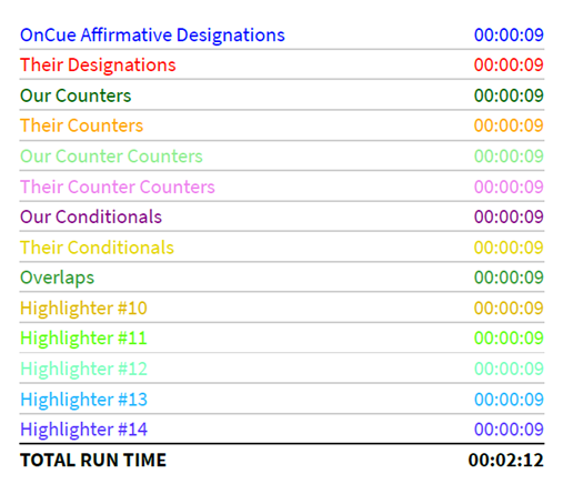 OnCue allows users to use different highlighter colors of transcript text to give a visual representation of sets of designations. This allows different groups of designations to be identified for whatever purpose needed.