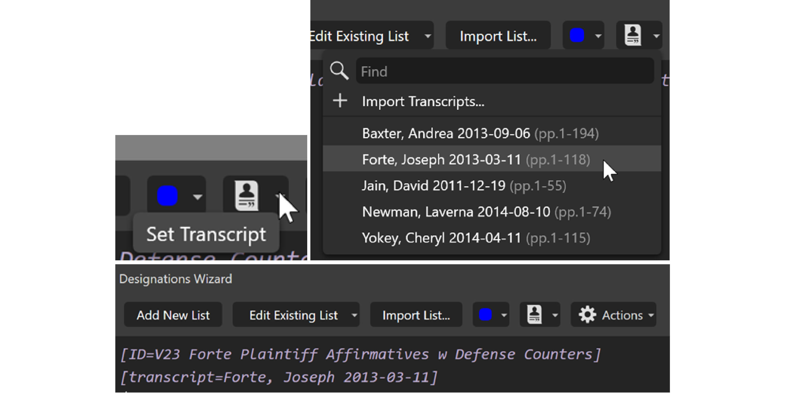 Click inside the Wizard above your designations, so you see the cursor. Then click on the transcript button to select the transcript you want to use.