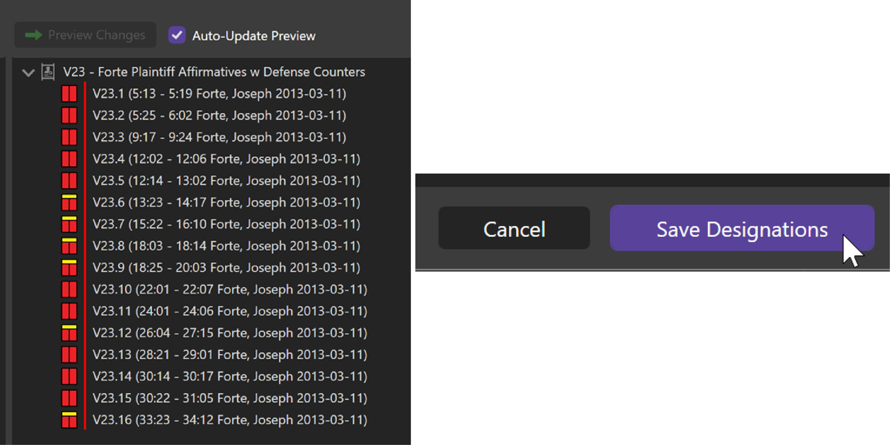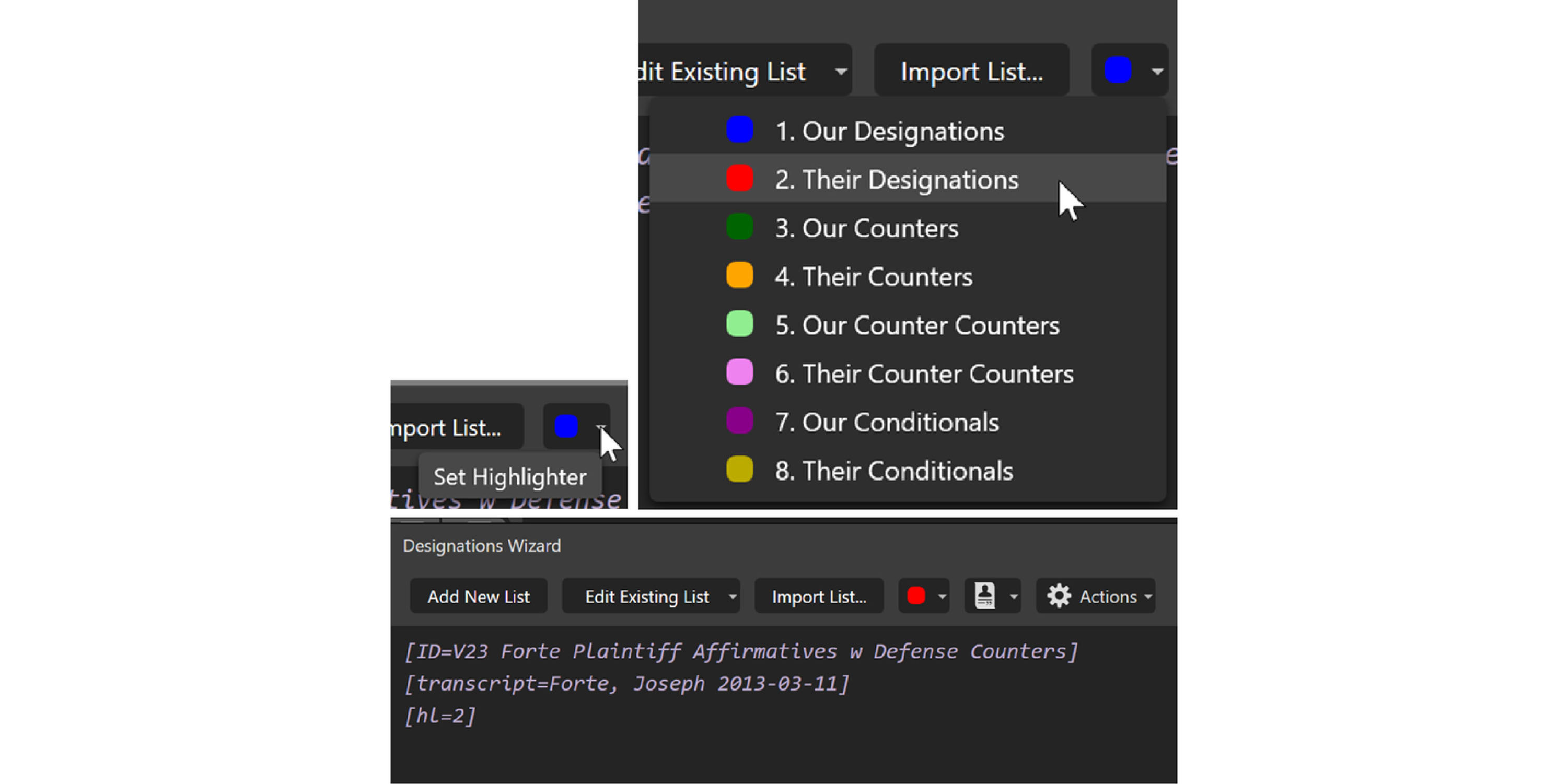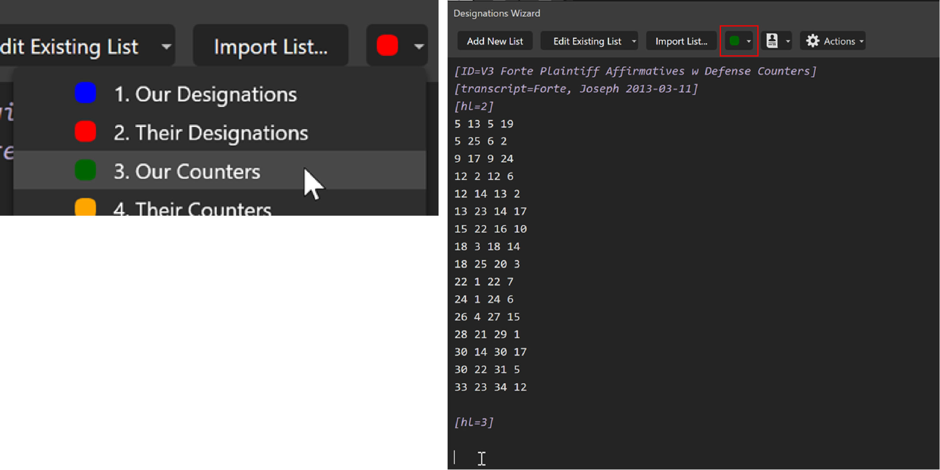 Let’s add counters to an existing list. First, click in the pane underneath the existing designations and then click on the highlighter color button to select a counter color.