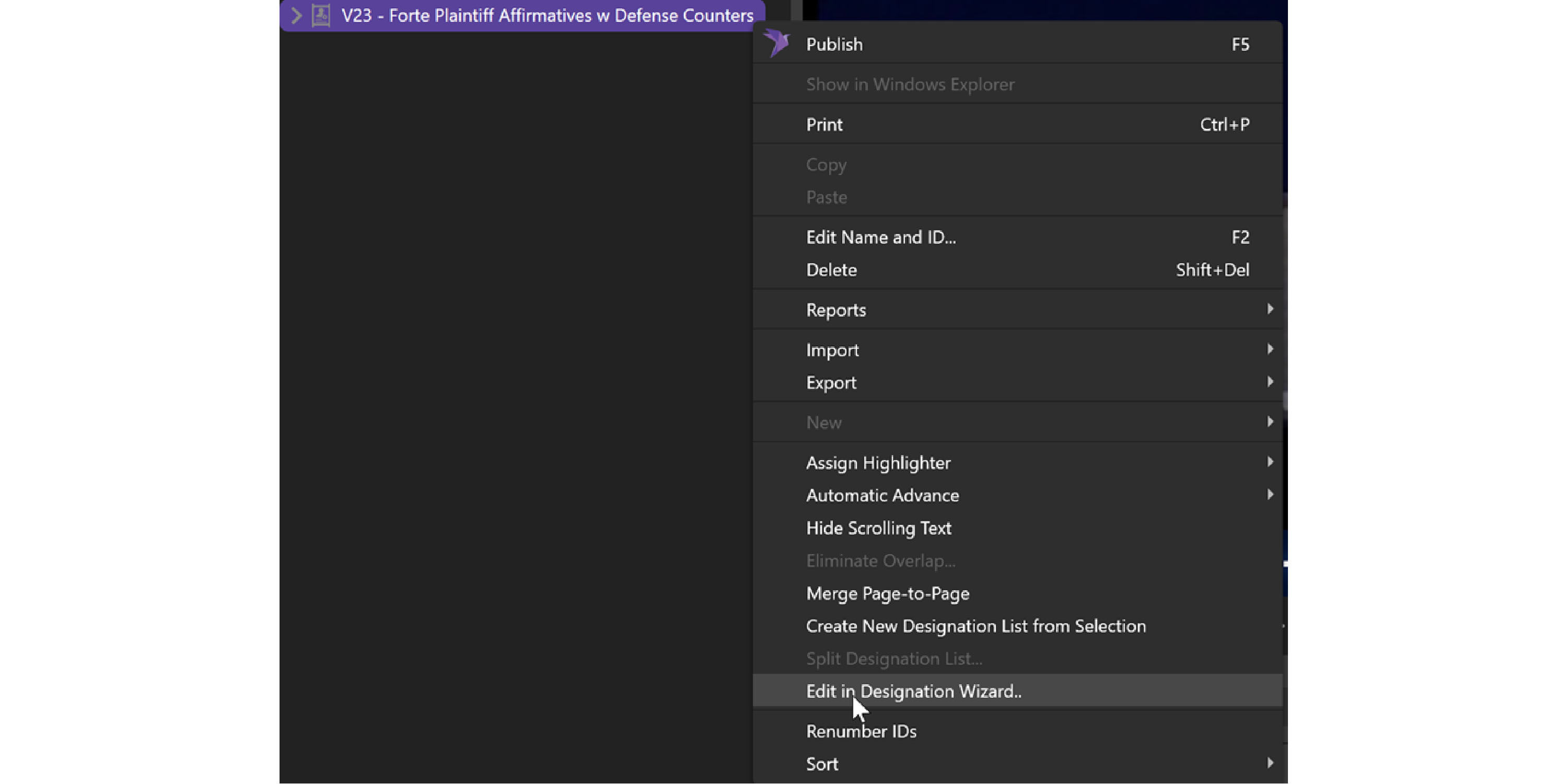 Highlight the designations in the Wizard