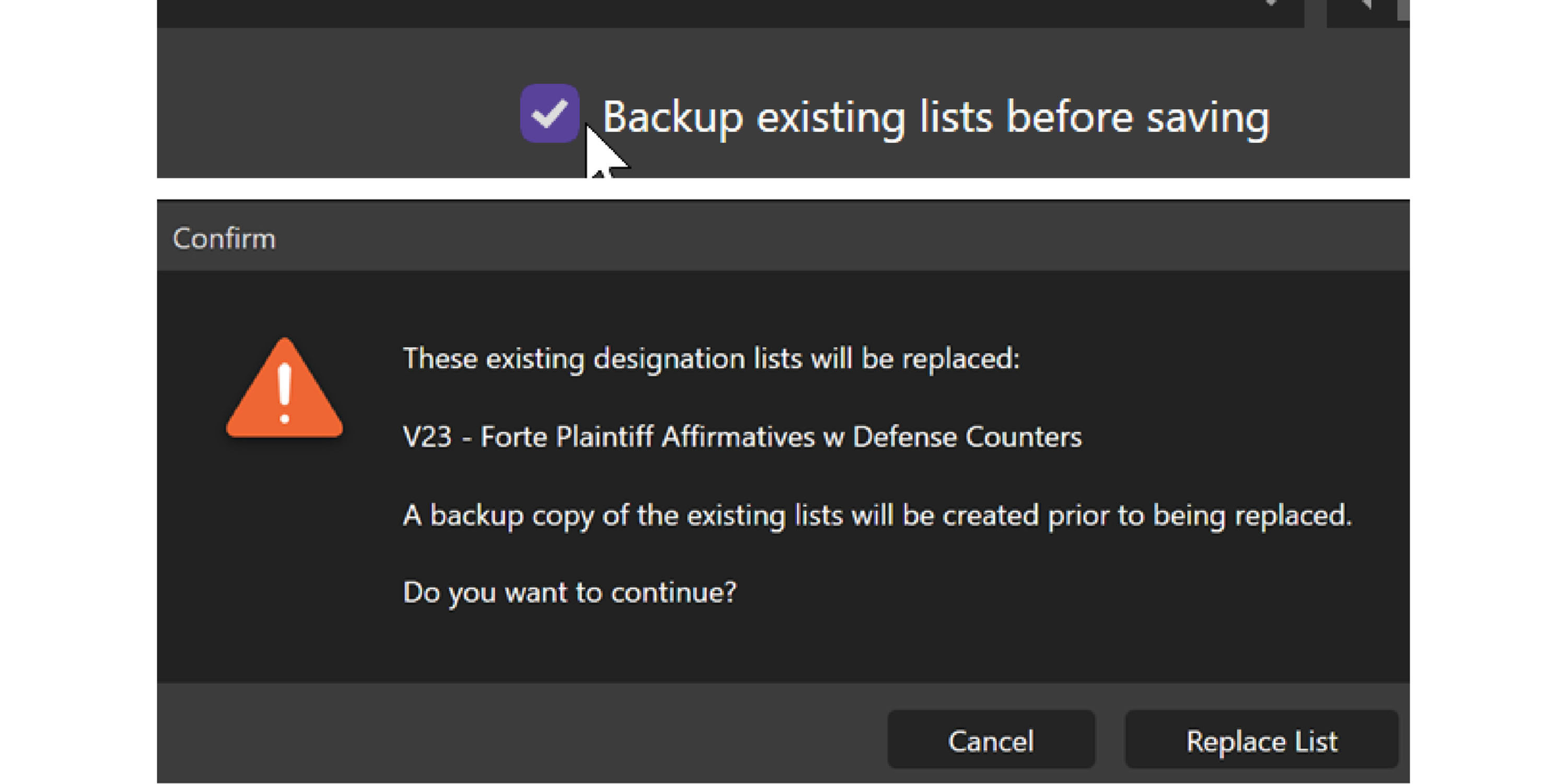 If you want to save a copy of the existing list without changes, check the Backup existing lists before saving option.