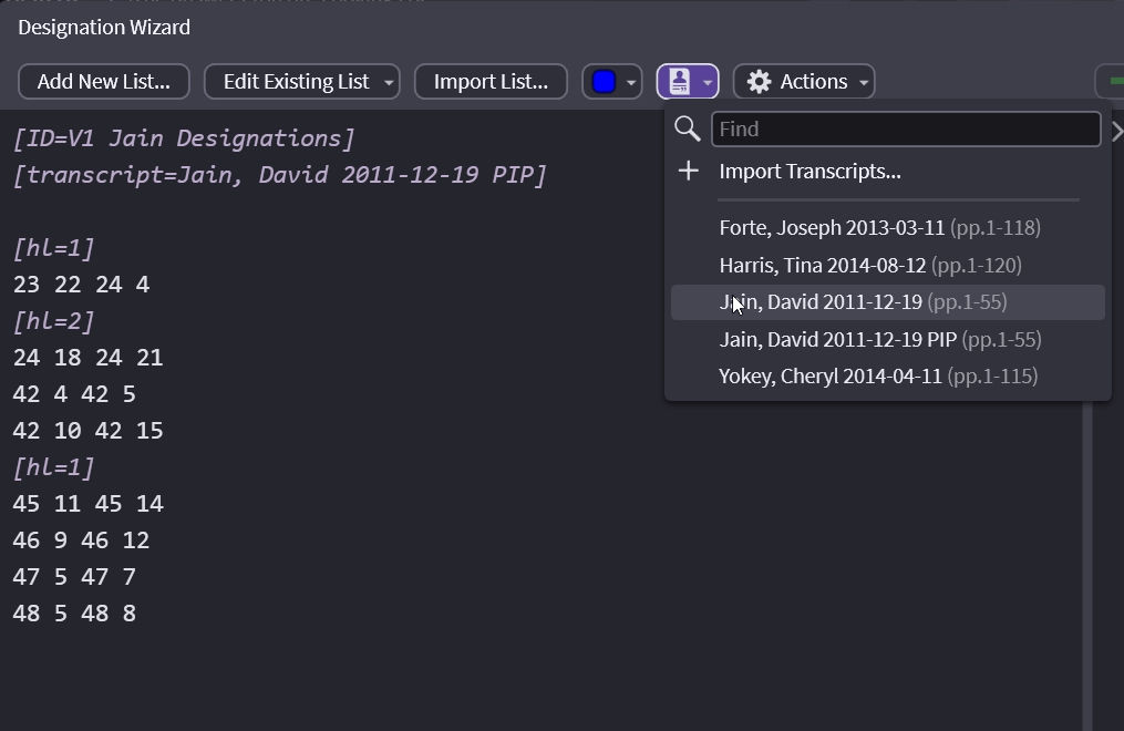 Choose the transcript associated with the designations you are adding.