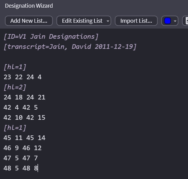 Open your existing list in the Designation Wizard.