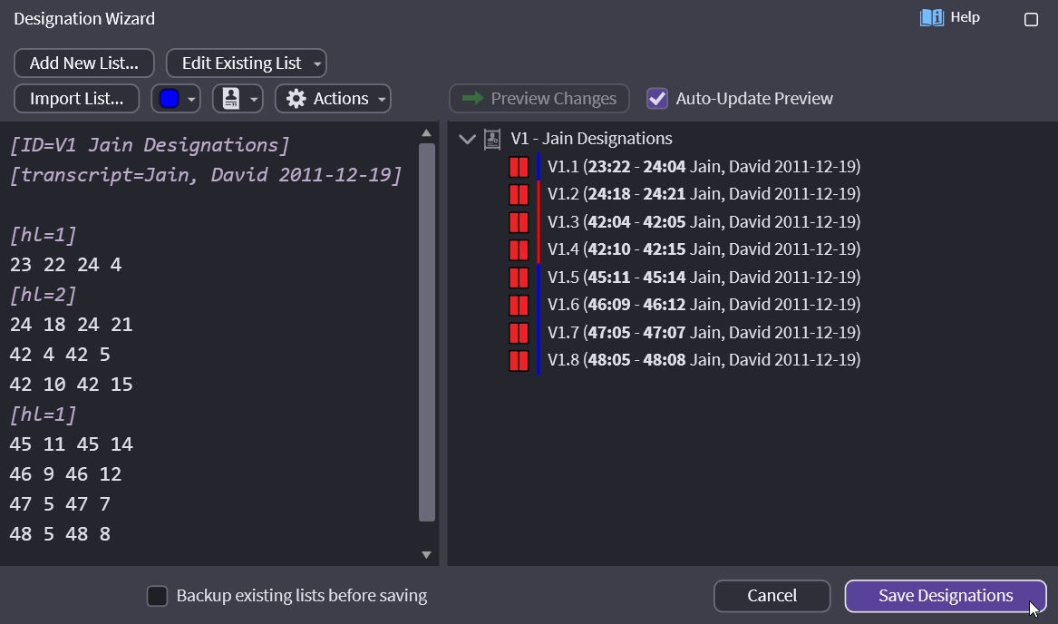 There is so much you can do with the Designation Wizard! You can add new designation lists, edit existing lists, and import text files. No more guesswork on bad imports.