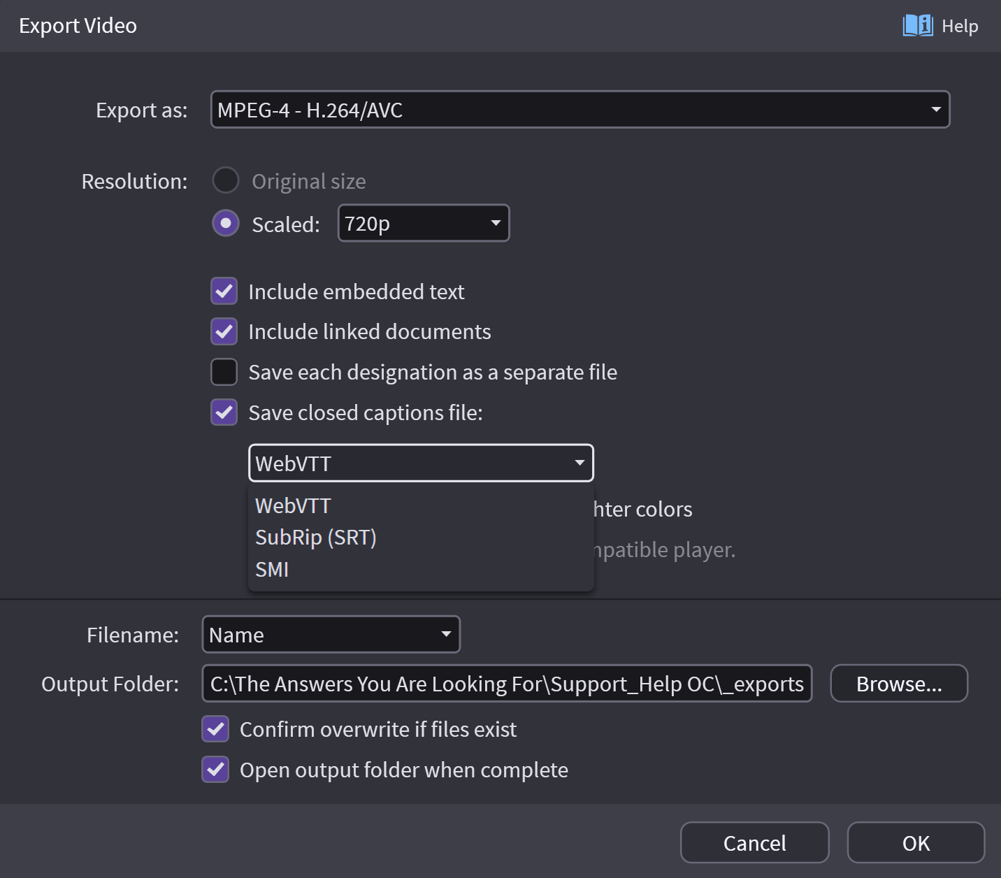 A variety of caption file options are included here.
