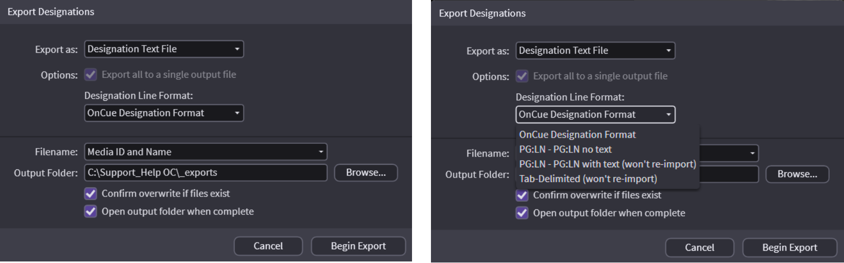 Warning: exporting designation lists does not recognize auto-advance arrows that are turned left in the list. If you need to export a list as separate clips, see Split Designation Lists for more details.