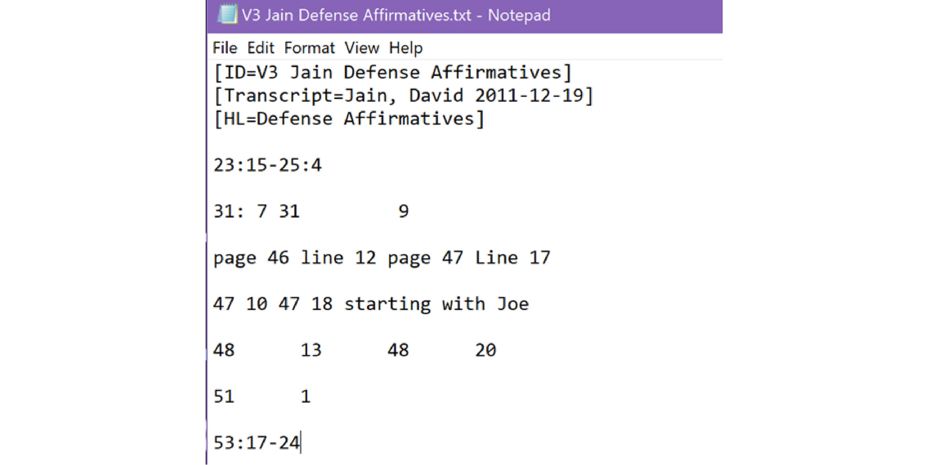 Designation Lists are the page/line clips of the deposition testimony for the purpose of playback in court. You will need a synchronized transcript file (.mdb or an OnCue xml) and the raw deposition video to use this feature (see Adding Synchronized Transcripts).