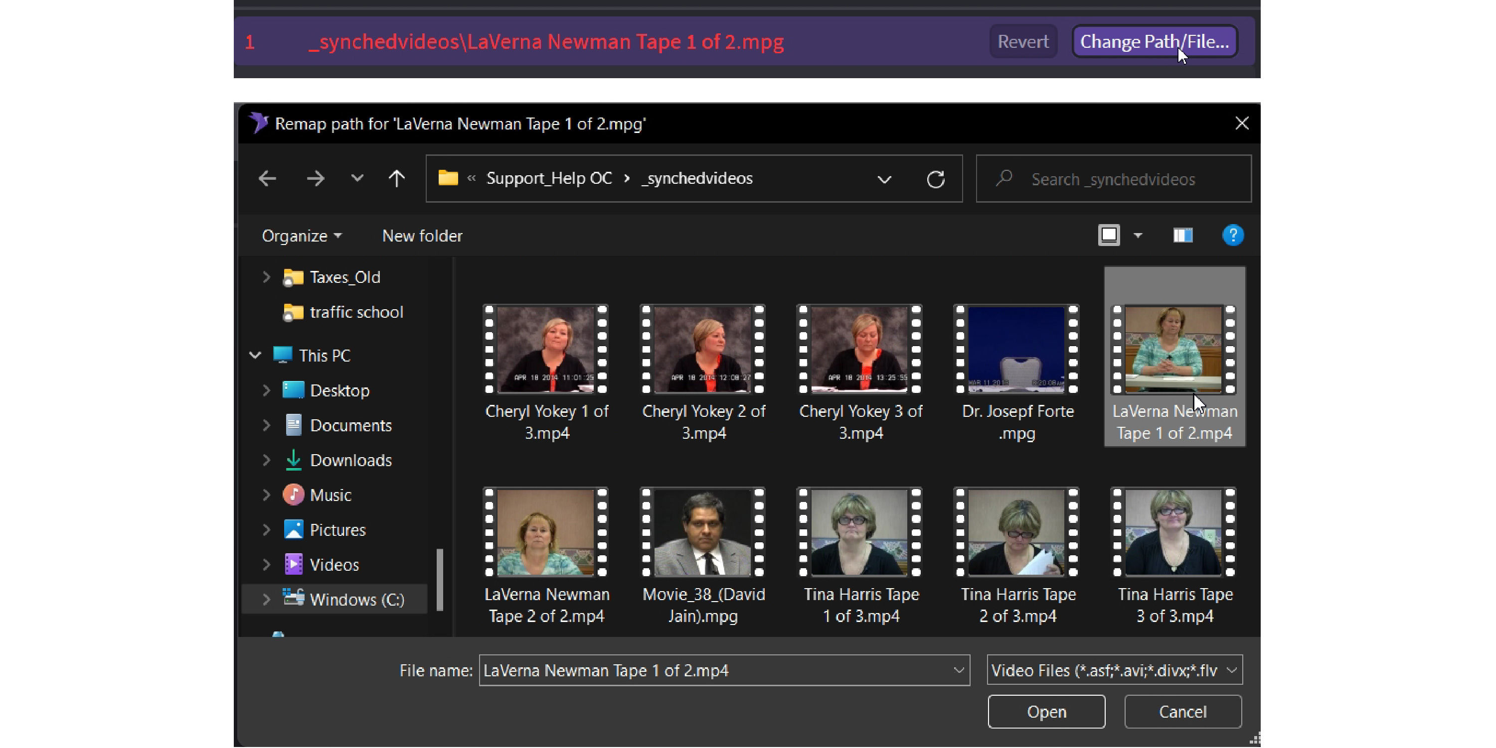 OnCue says your deposition video is not found but you know you put them in the _synchedvideos folder? Does your video file extension not match what your transcript (.mdb or OnCue .xml) is looking for? That’s an easy fix.