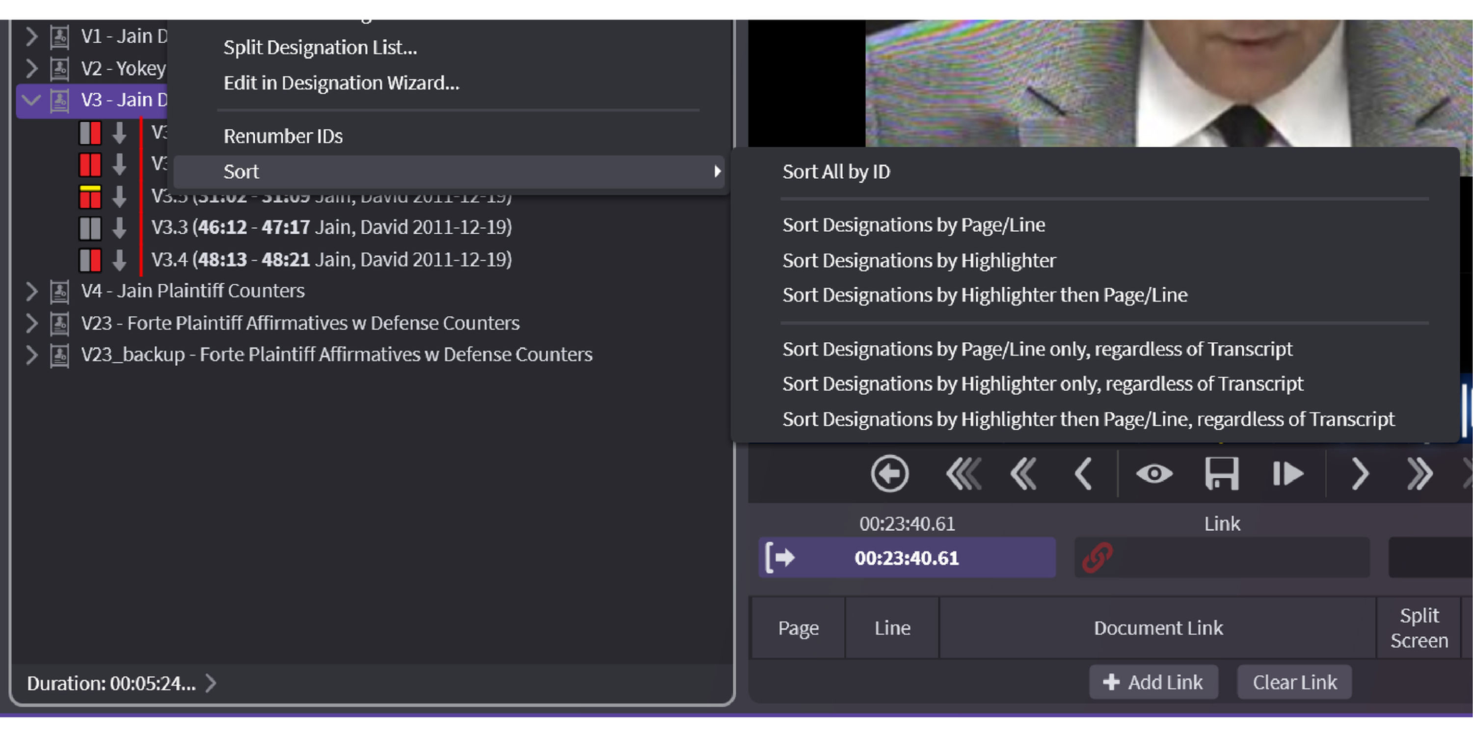 First, select the designation list(s) you want to sort, right-click to open the right-click menu, and hover your mouse over Sort to see the available options.