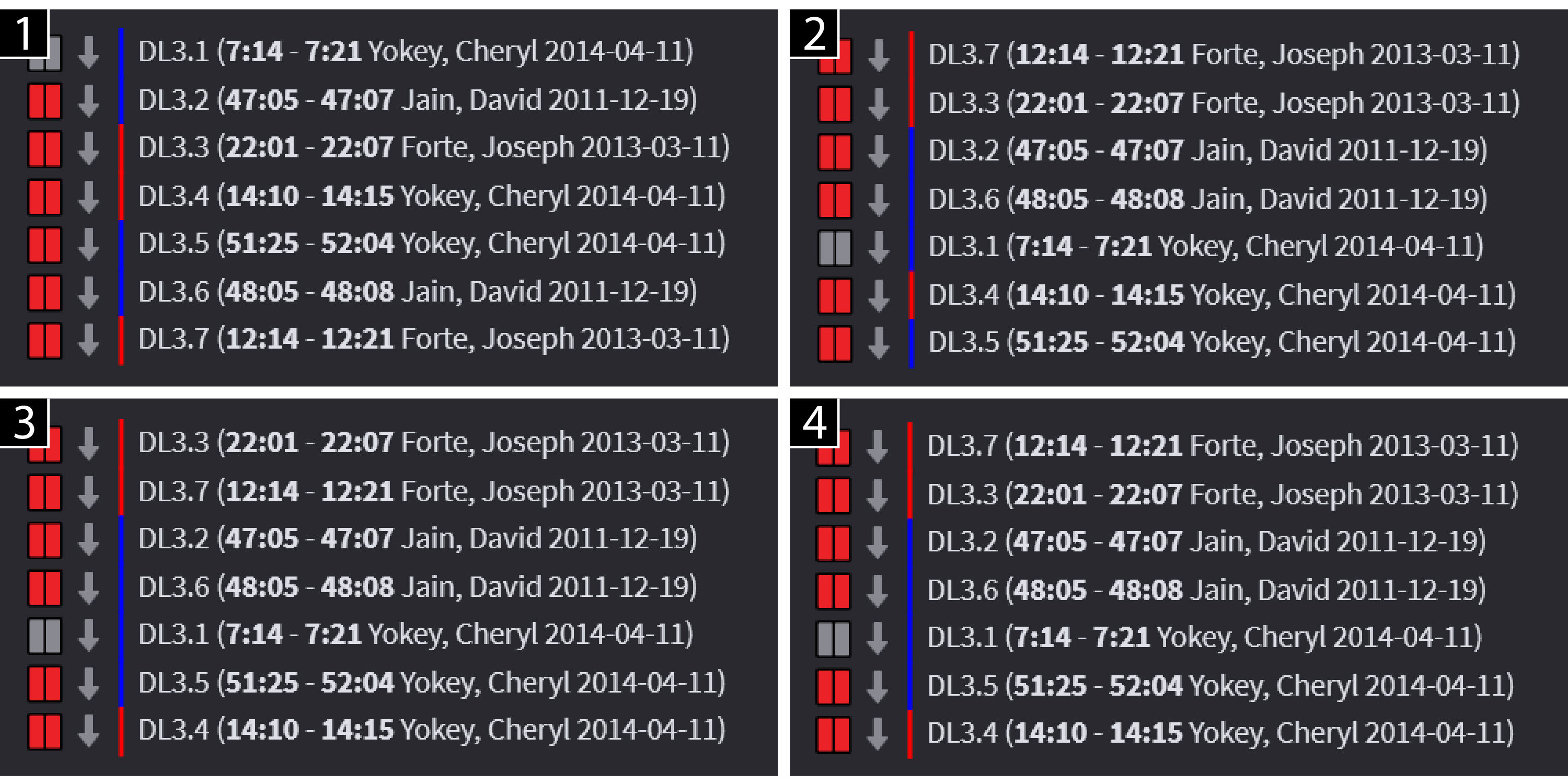 Sorts your list by highlighter in numerical order. If you have more than one transcript in your list then it will first sort each transcript alphabetically and then sorts by highlighter.