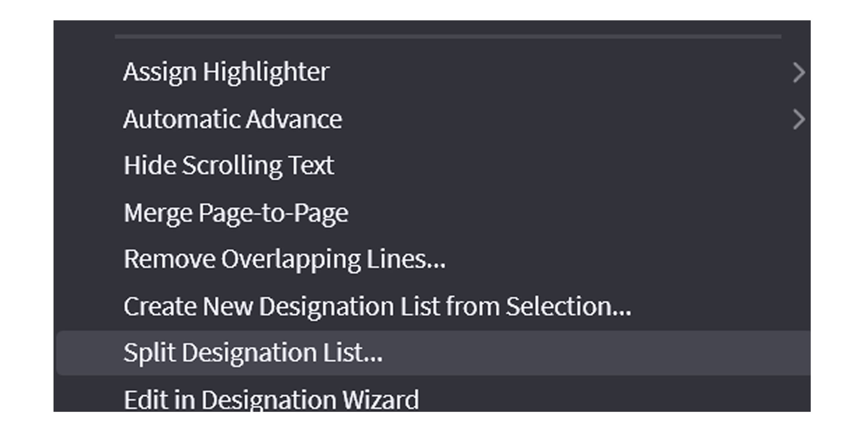 Right-click on the root of your Designation List and choose "Split Designation List" to get the options.