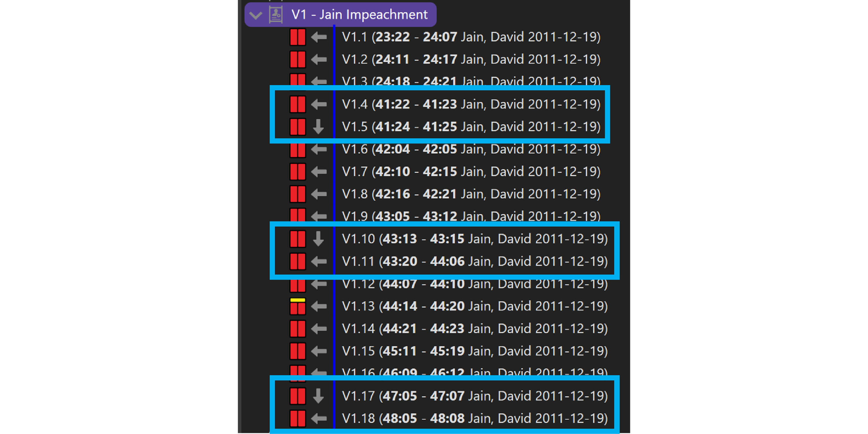 While the auto-advance arrow settings make creating a Designation List of impeachment clips easy, it can sometimes make sense to break a designation list into separate lists.