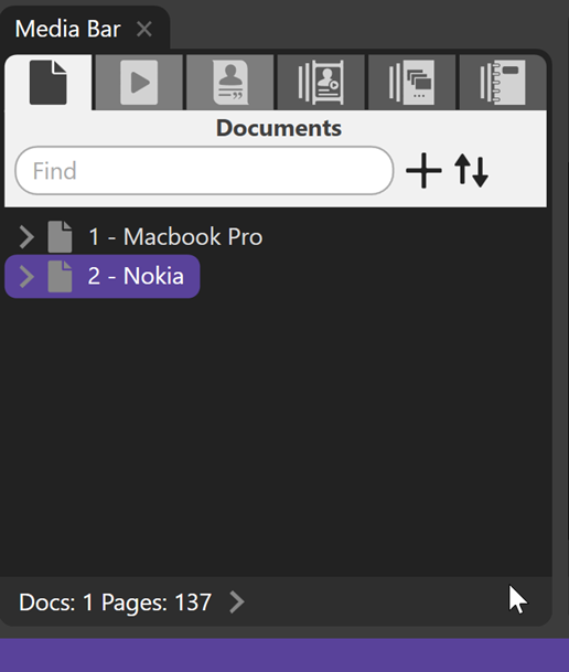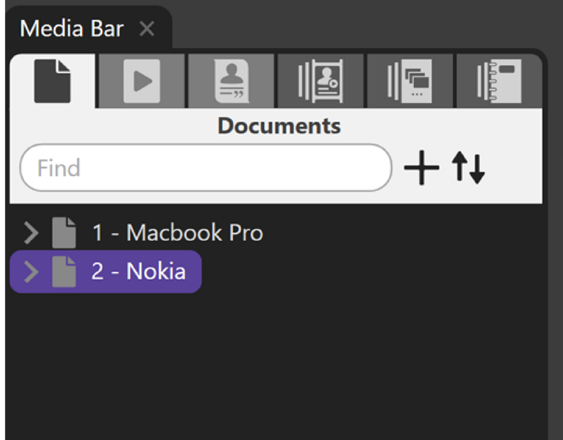 After selecting the files or folders to be added, drag them over to the Documents section of the Media Bar or hit the + at the top of your Files pane.