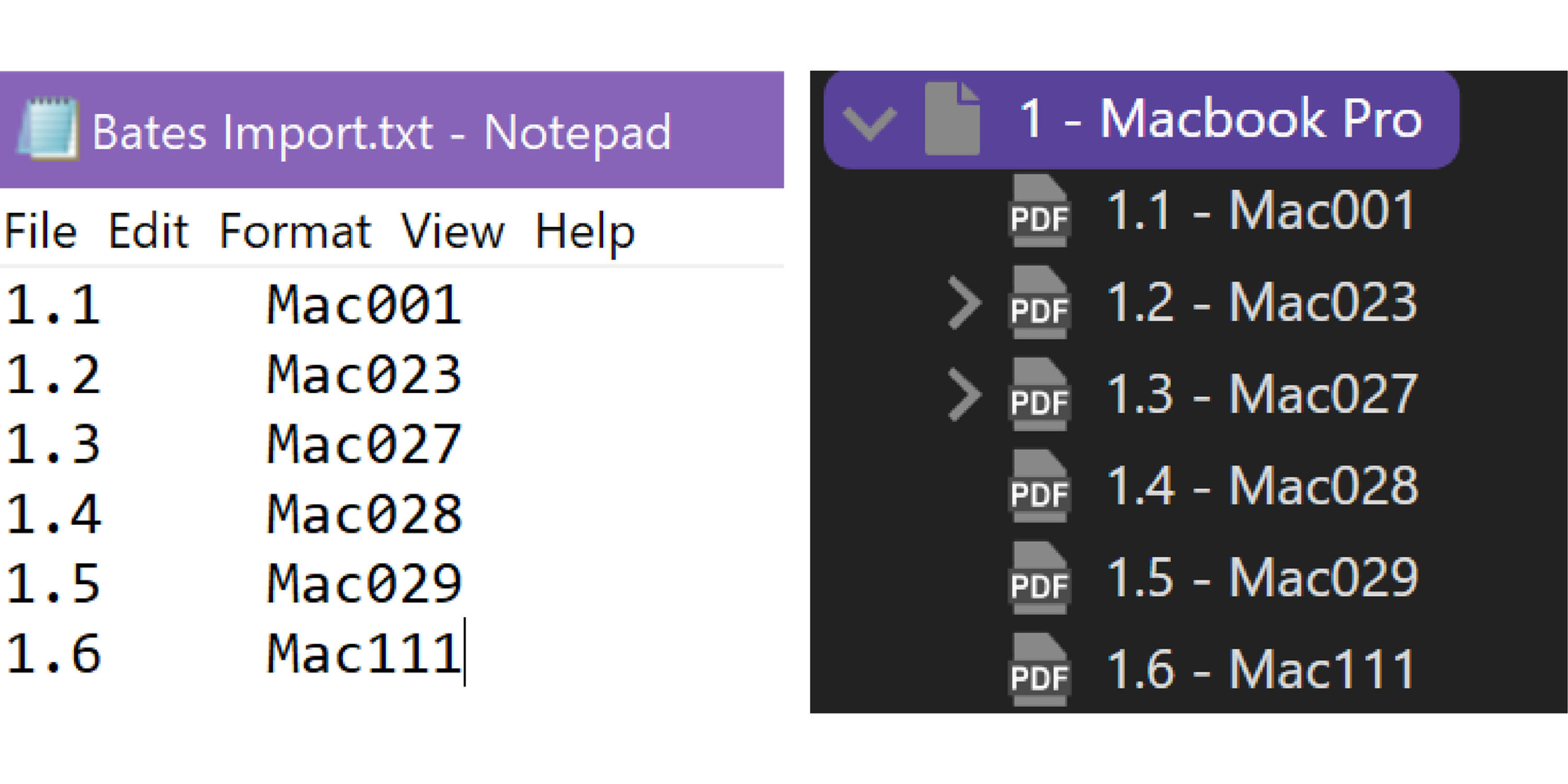 - importing Bates numbers from a text file.