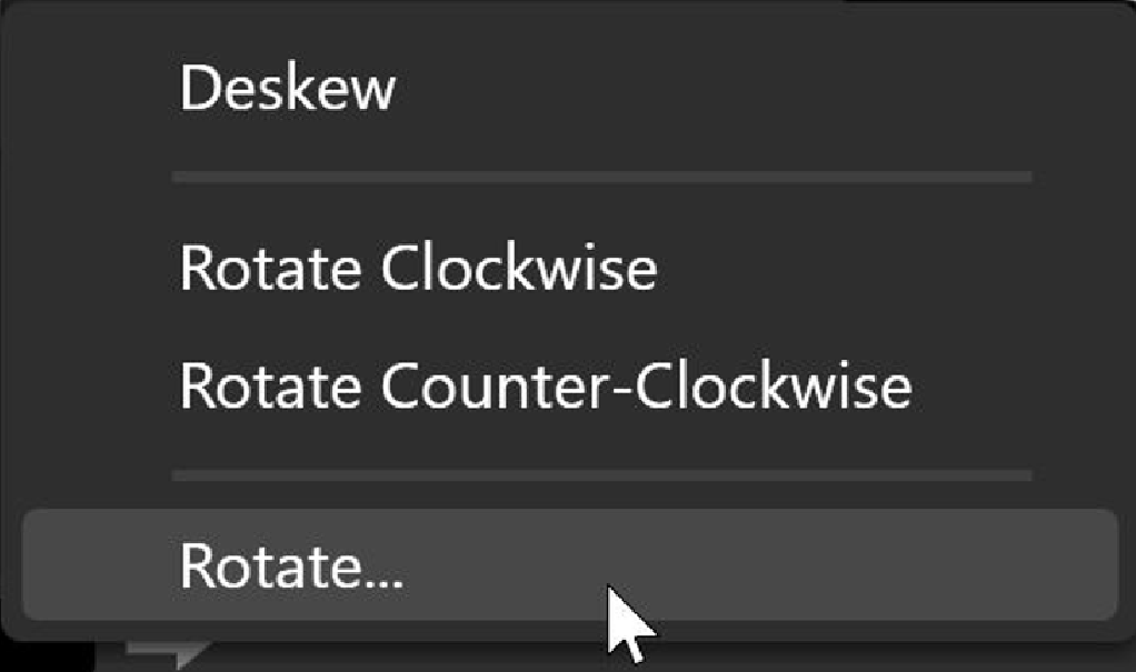 To manually deskew individual pages in the Viewer Pane, use the nudge buttons on the toolbar to rotate in small increments, you can also use the hotkeys - Shift + [ and Shift + ] . These hotkeys also work in Presentation Mode.