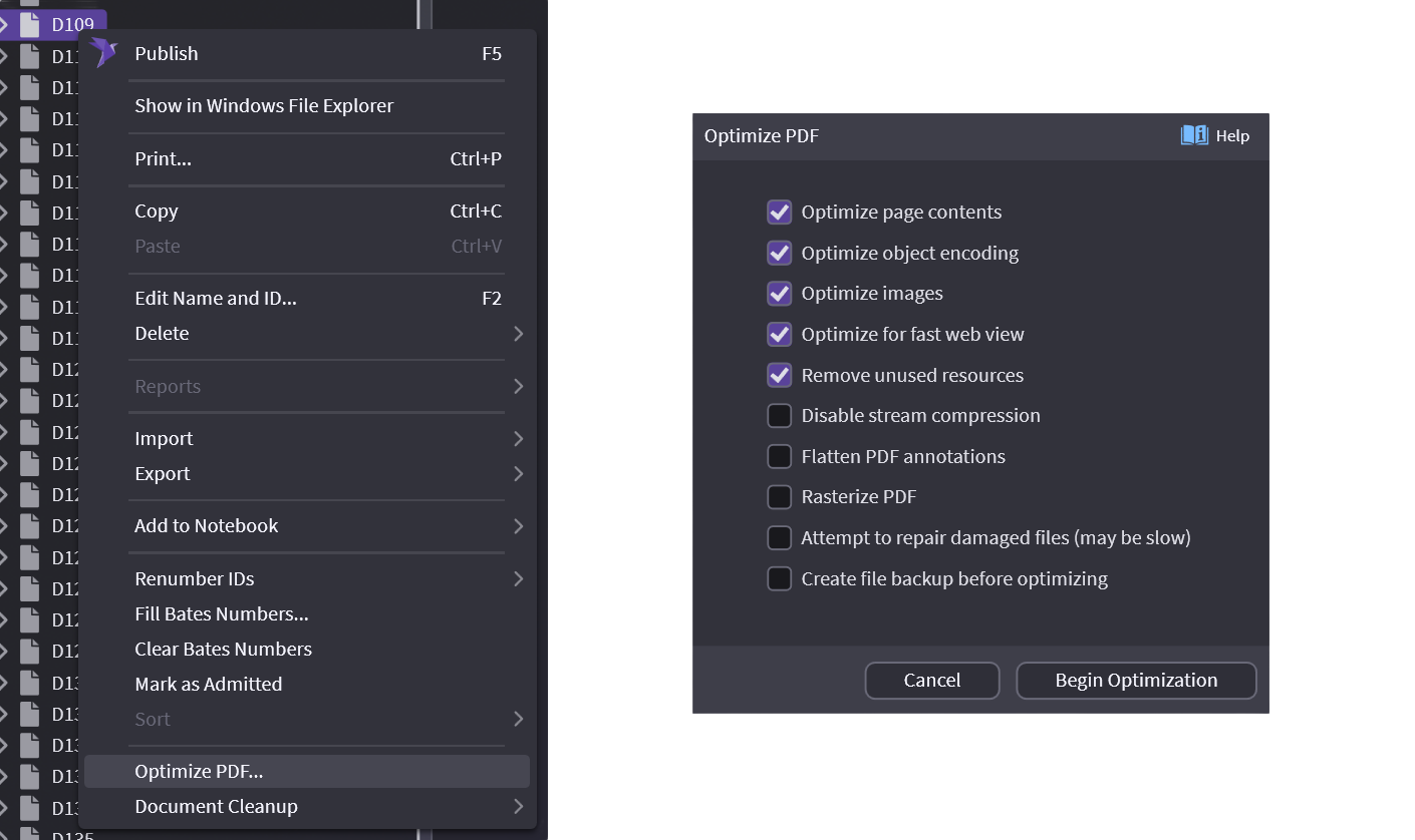 Right-click on your document and select Optimize PDF...