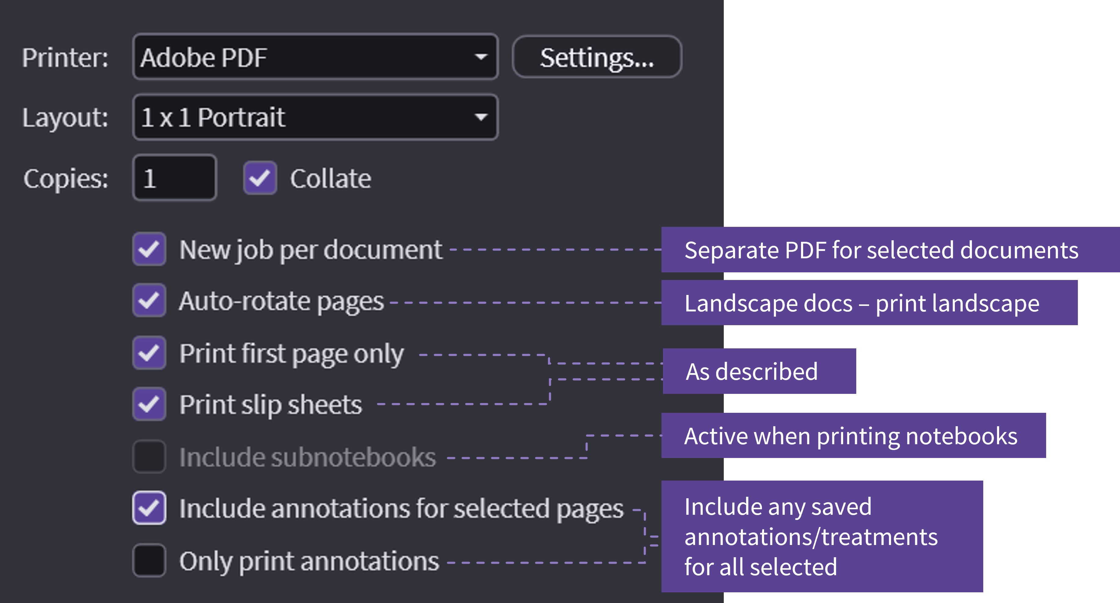 - OnCue doesn't use export for adding information but there are many options for printing documents which allows you to print them for a variety of purposes.