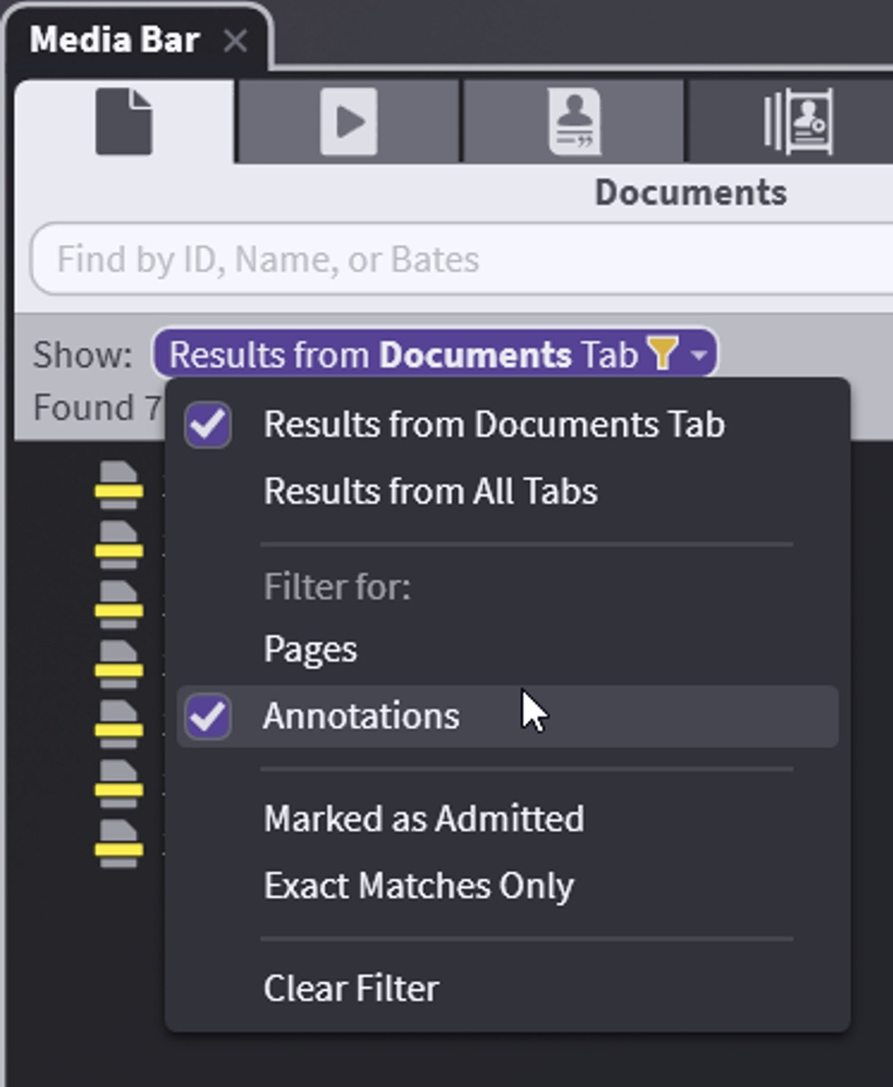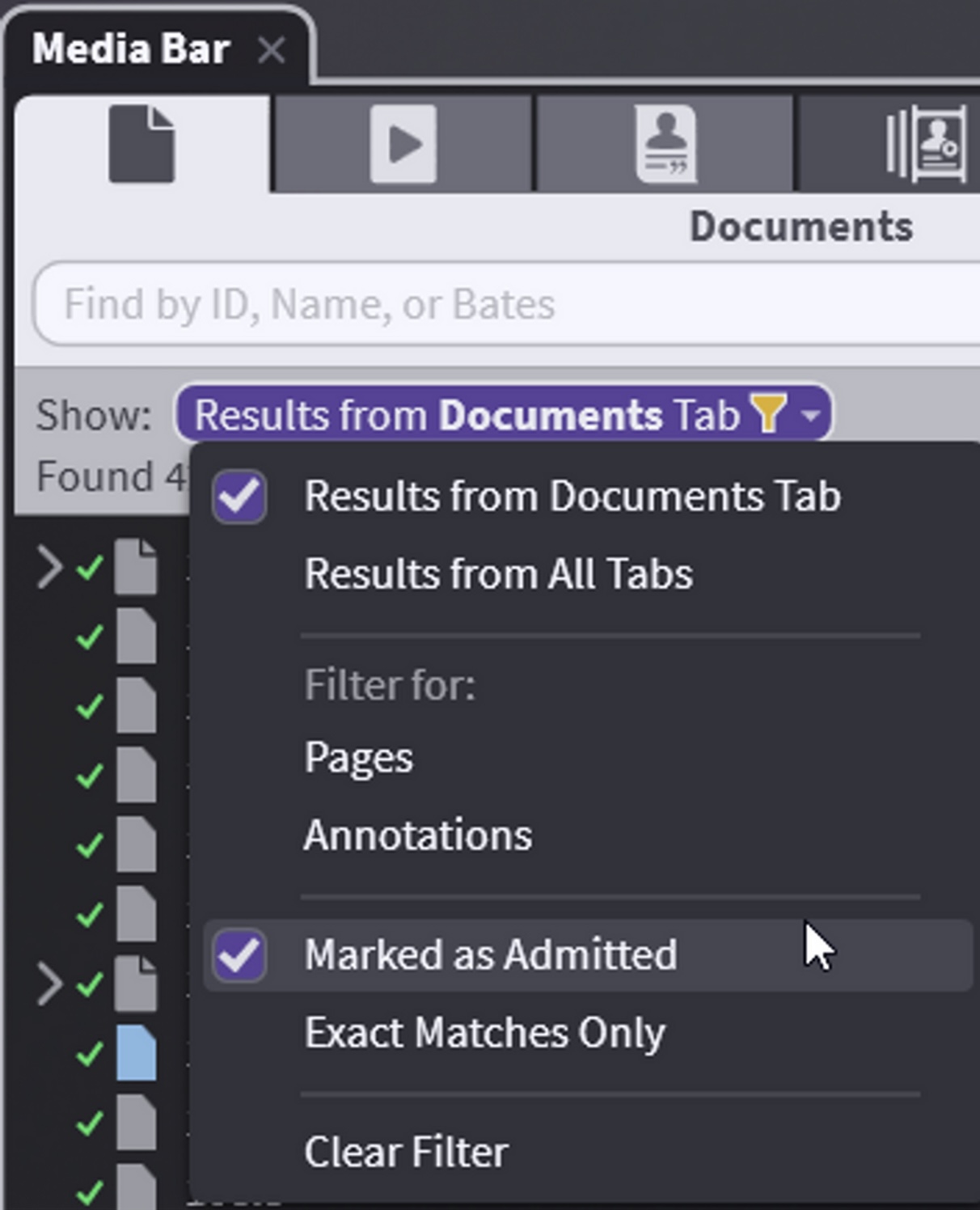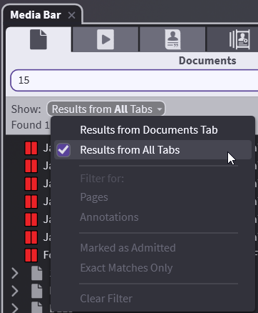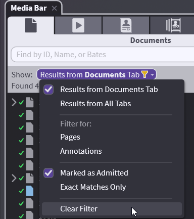 You can filter for only annotations or Marked Admitted or do Exact Match. Filters do not require you to type anything into the search field.