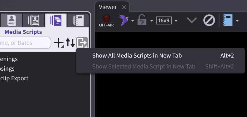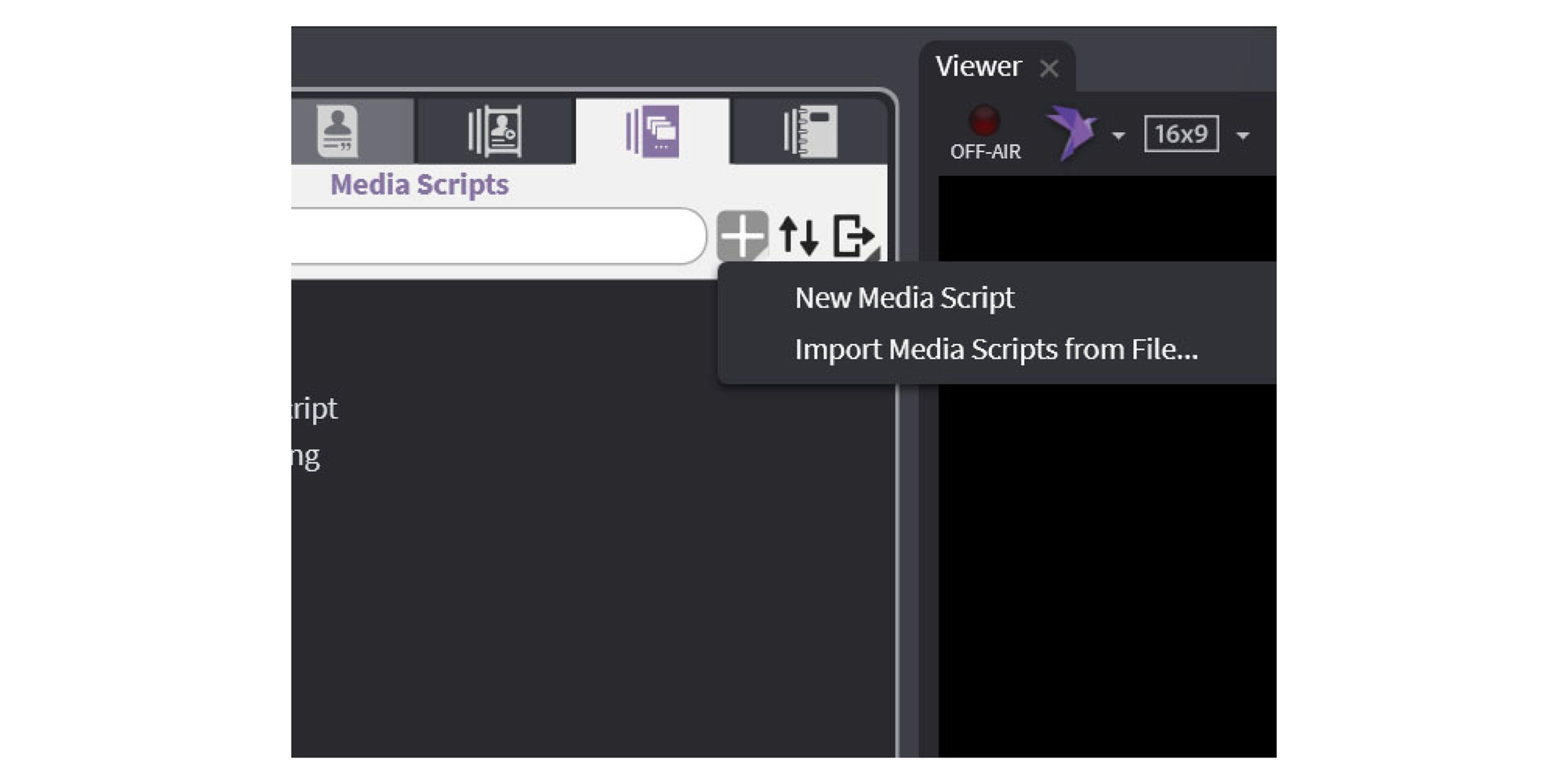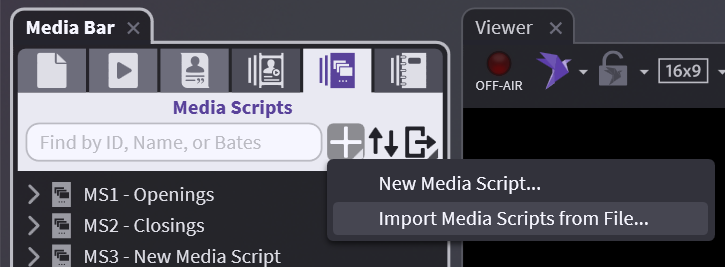 To start a new Media Script, first hover over the " + " sign in the Media Scripts tab of the Media Bar and click New Media Script.