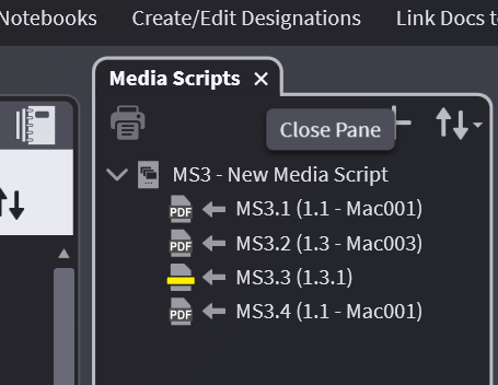 Double-click on your Media Script to open a new pane or hit the Sidebar button. This opens a new pane next to the media bar.