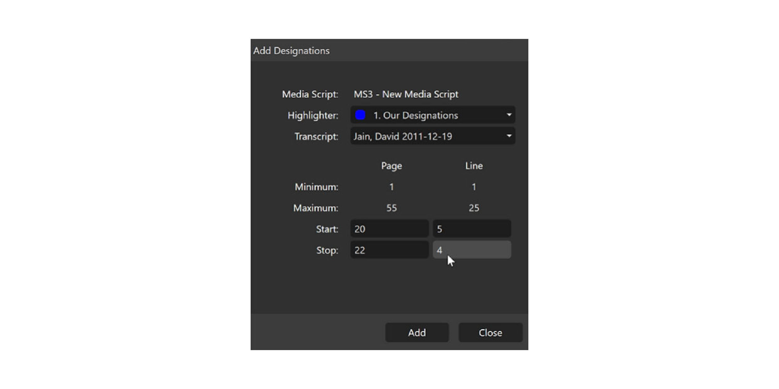 Any designations included in the Media Script will be merged page-to-page. See Editing Designations - Page Line Edits