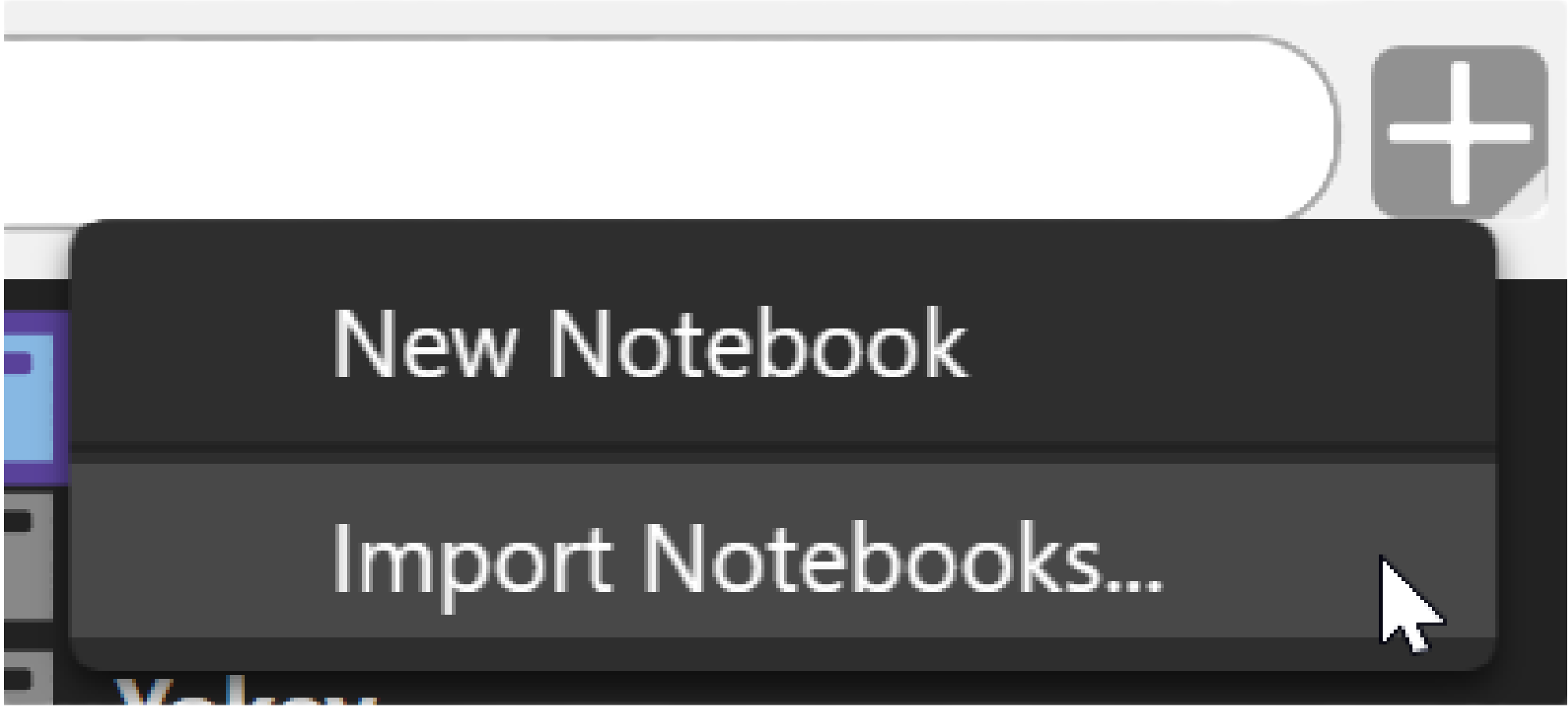 Want to import? Hover over the + sign and select Import Notebooks