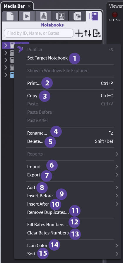 Note: All individual notebook elements follow the right-click options for those elements (doc, designation or audiovisual)