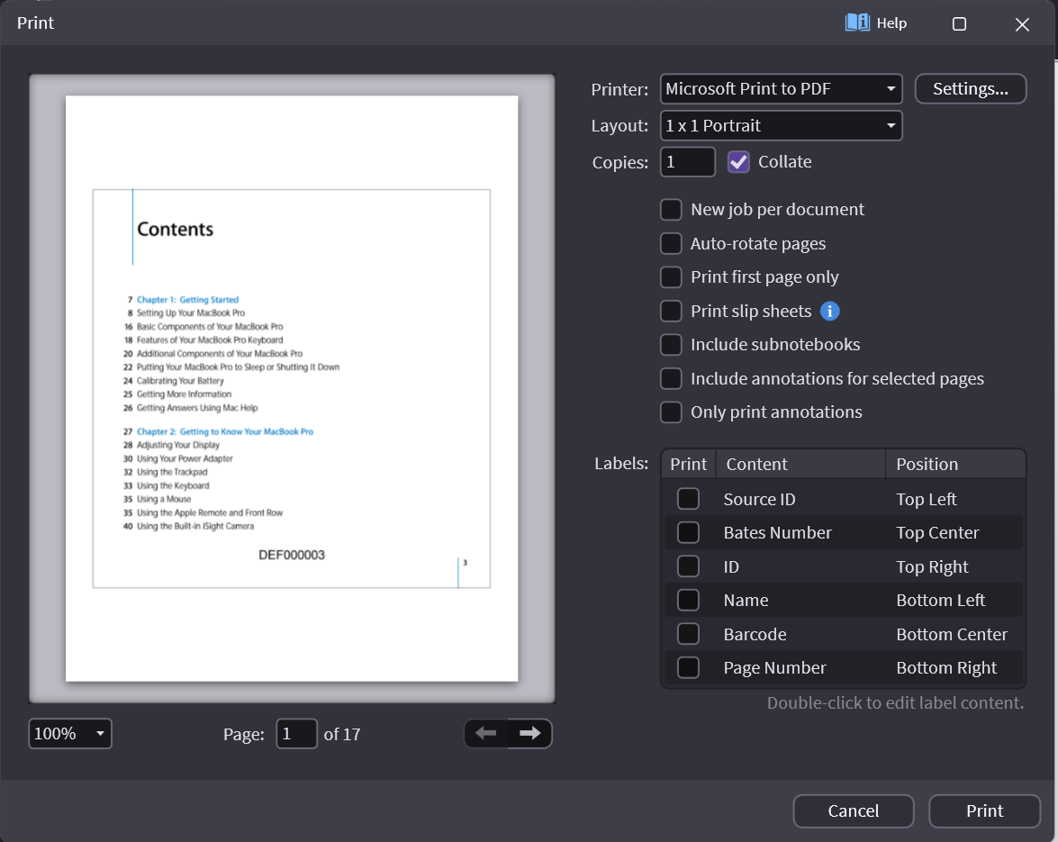 Printing from Notebooks is a fast and easy way to generate hard-copies for a witness, argument, or for attorney review.