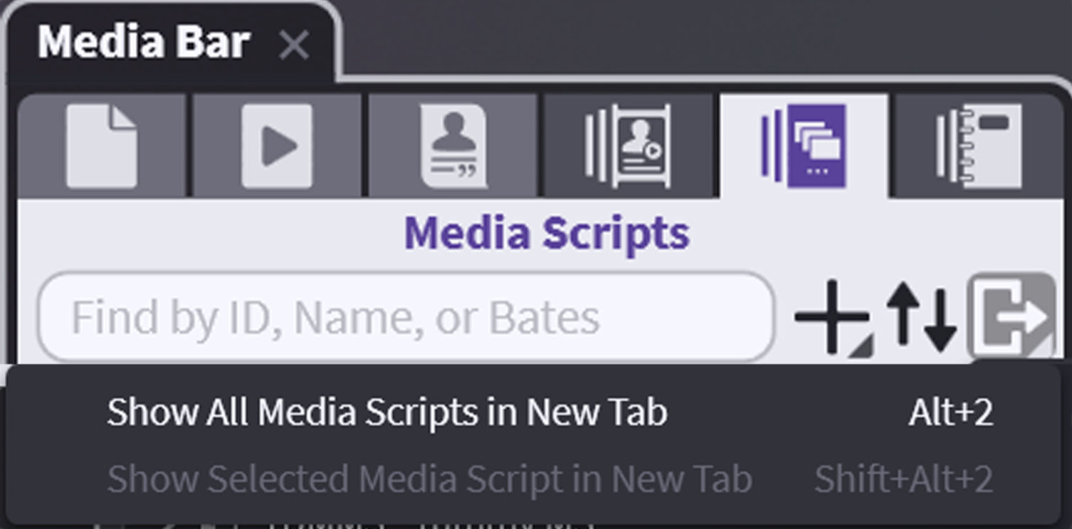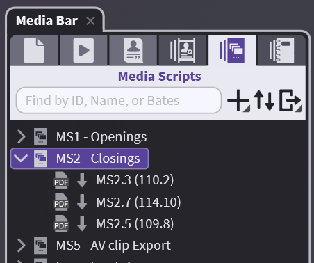 The last three tabs in the Media Bar are unique in that they are structured to help you organize the materials of your case outside of the Media Bar. These tabs are Designations, Media Scripts, and Notebooks.