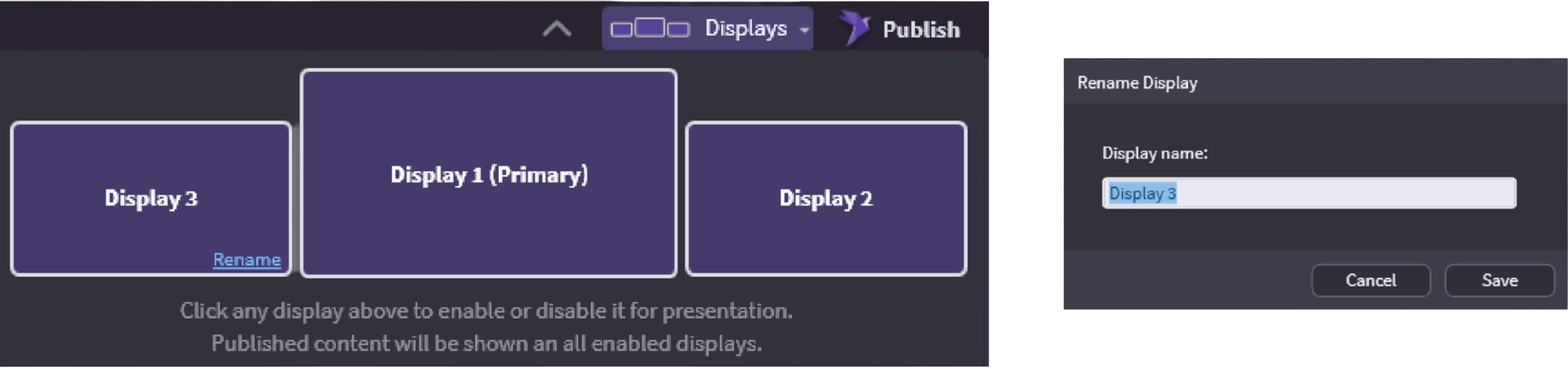 Displays can be renamed by hovering over the display and clicking the Rename hover link.