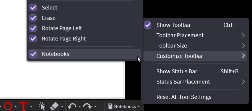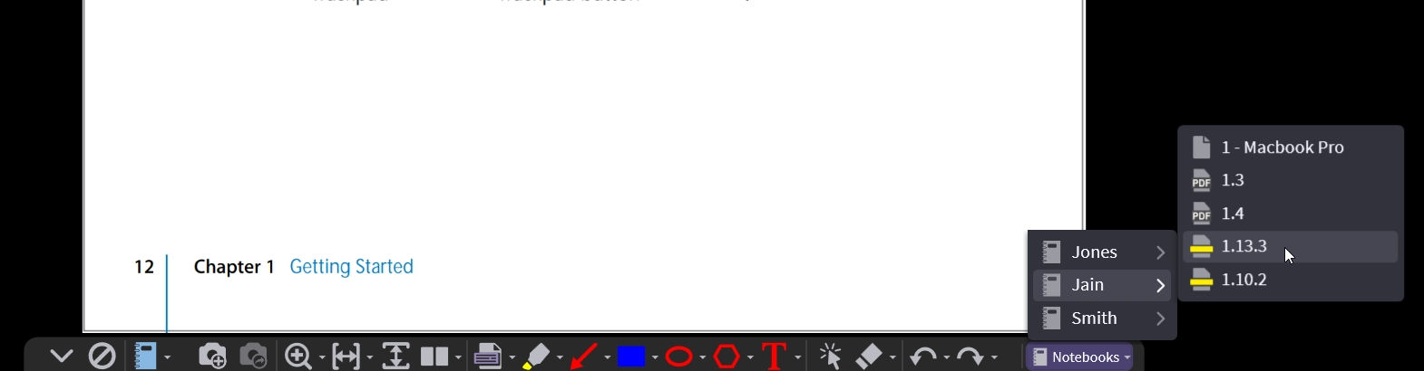 The Presentation toolbar also allows you to present materials contained in Notebooks.