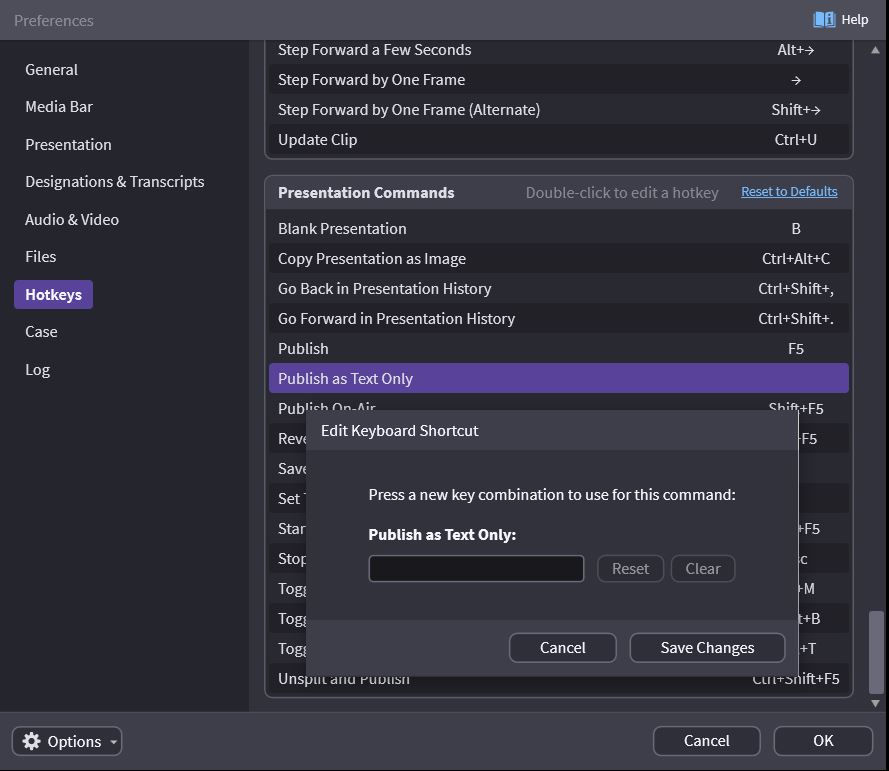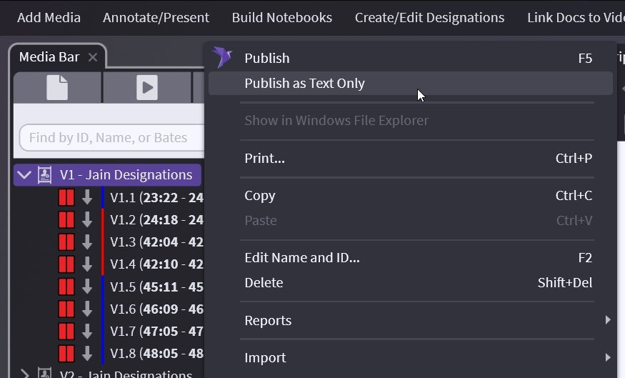 You can now Right-click, select Publish as Text Only and it shows only the designation you are on. See the bottom of the Creating Impeachment Designation Lists article for a more advanced explanation regarding displaying 2 designations as one.