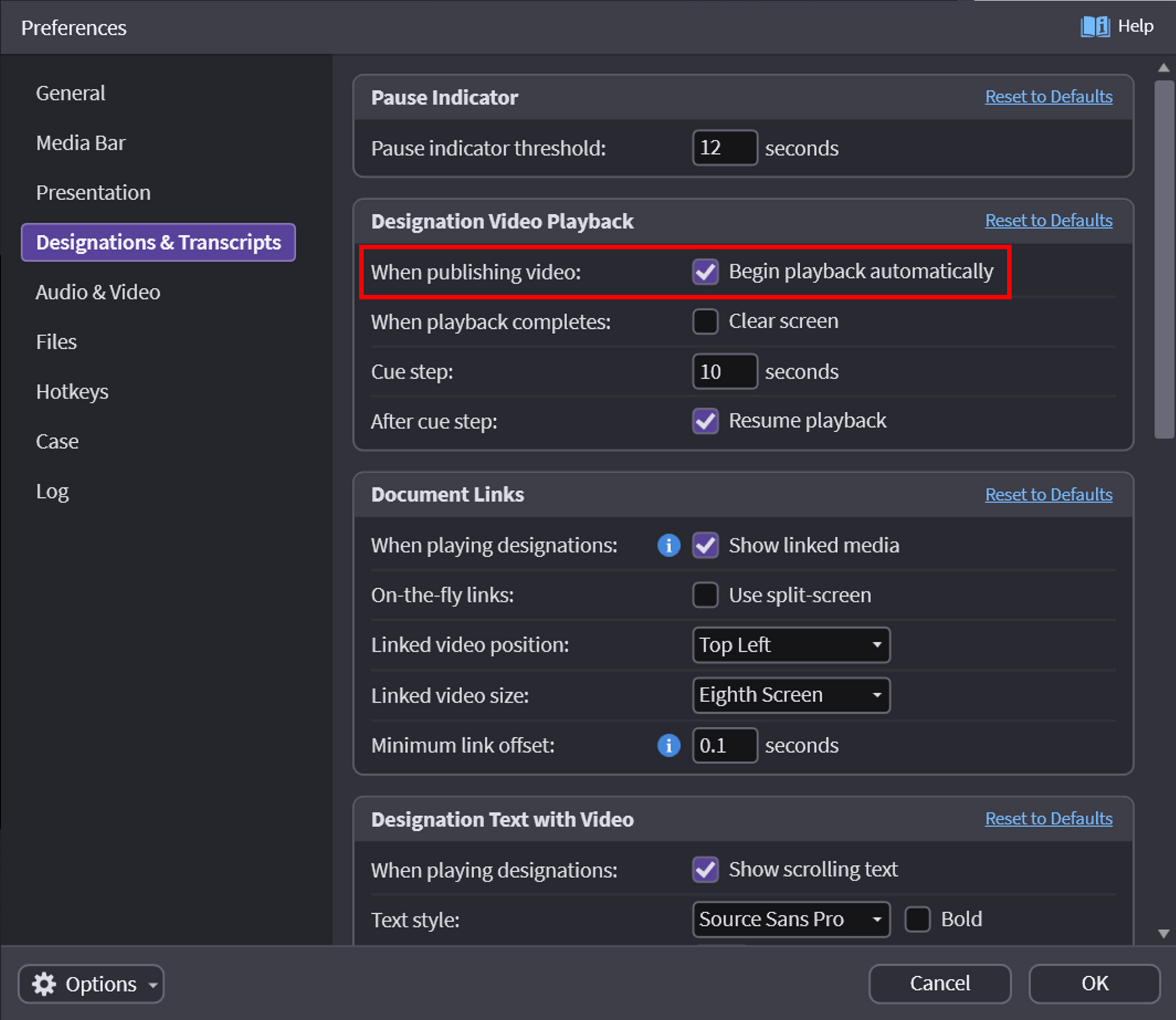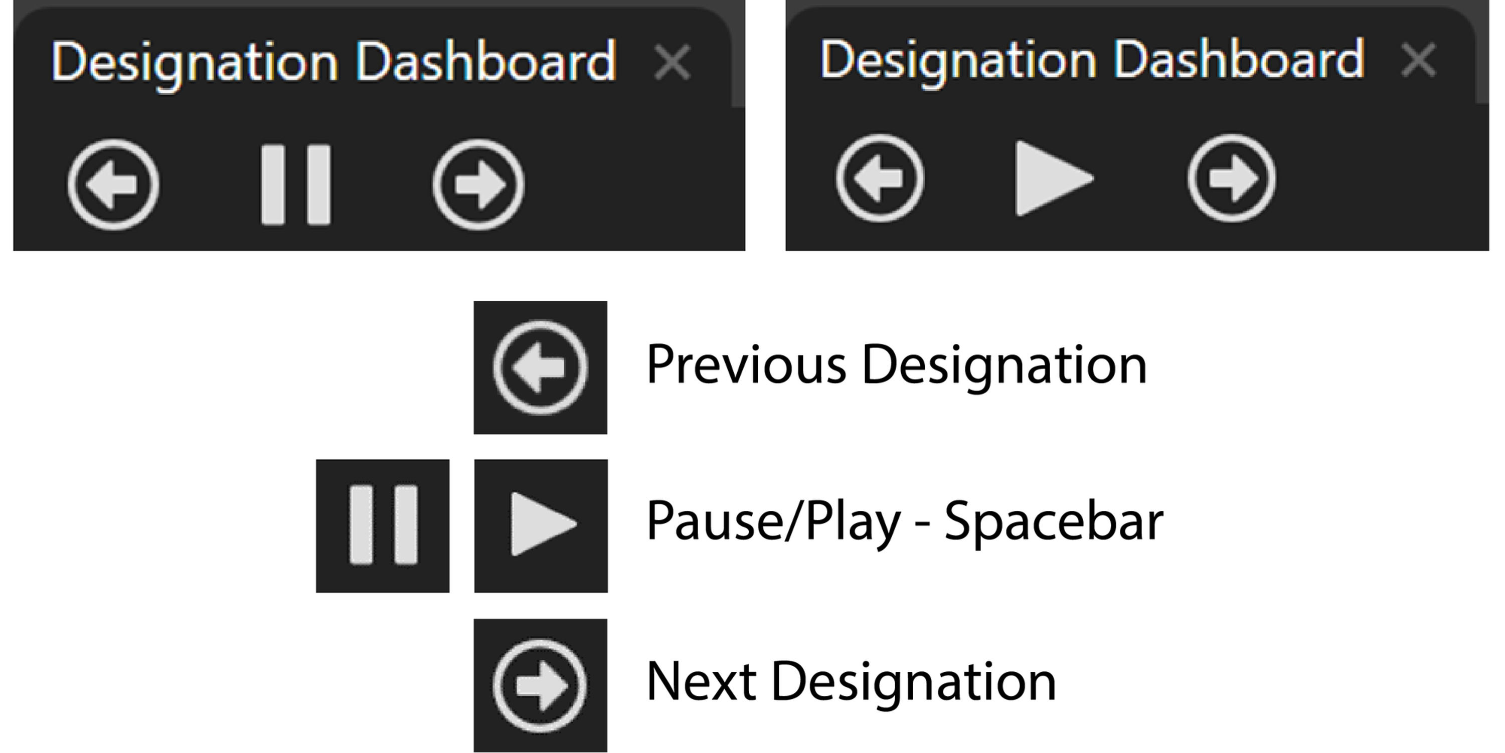 If you select an individual designation and not the Designation List, it will start from that designation and either play through to the end of the List, or stop after that single designation or stop point, depending on how you have your auto-advance arrows set.