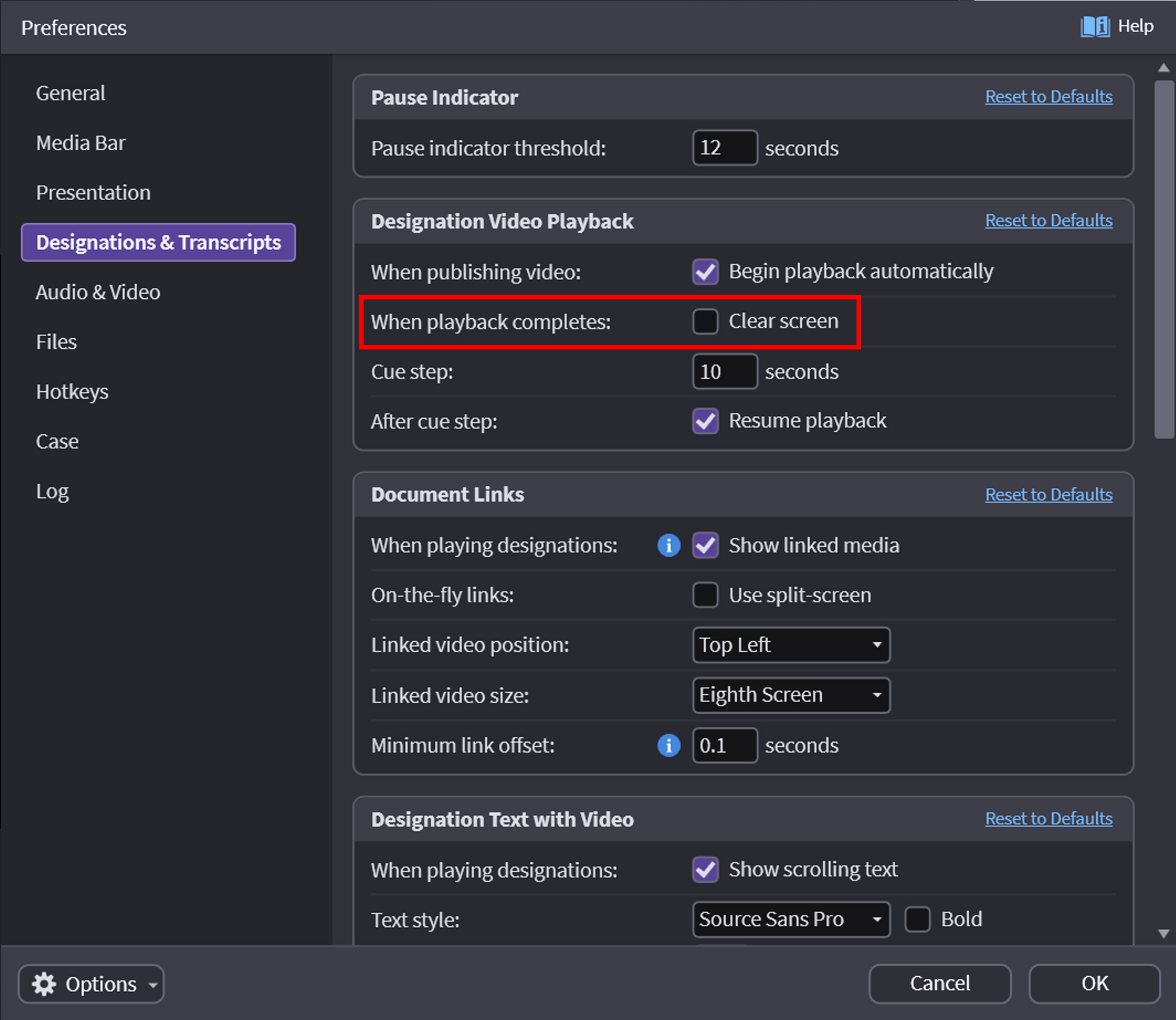 You can also set your designation list to clear the screen upon completion, as seen in Preferences > Designations below.