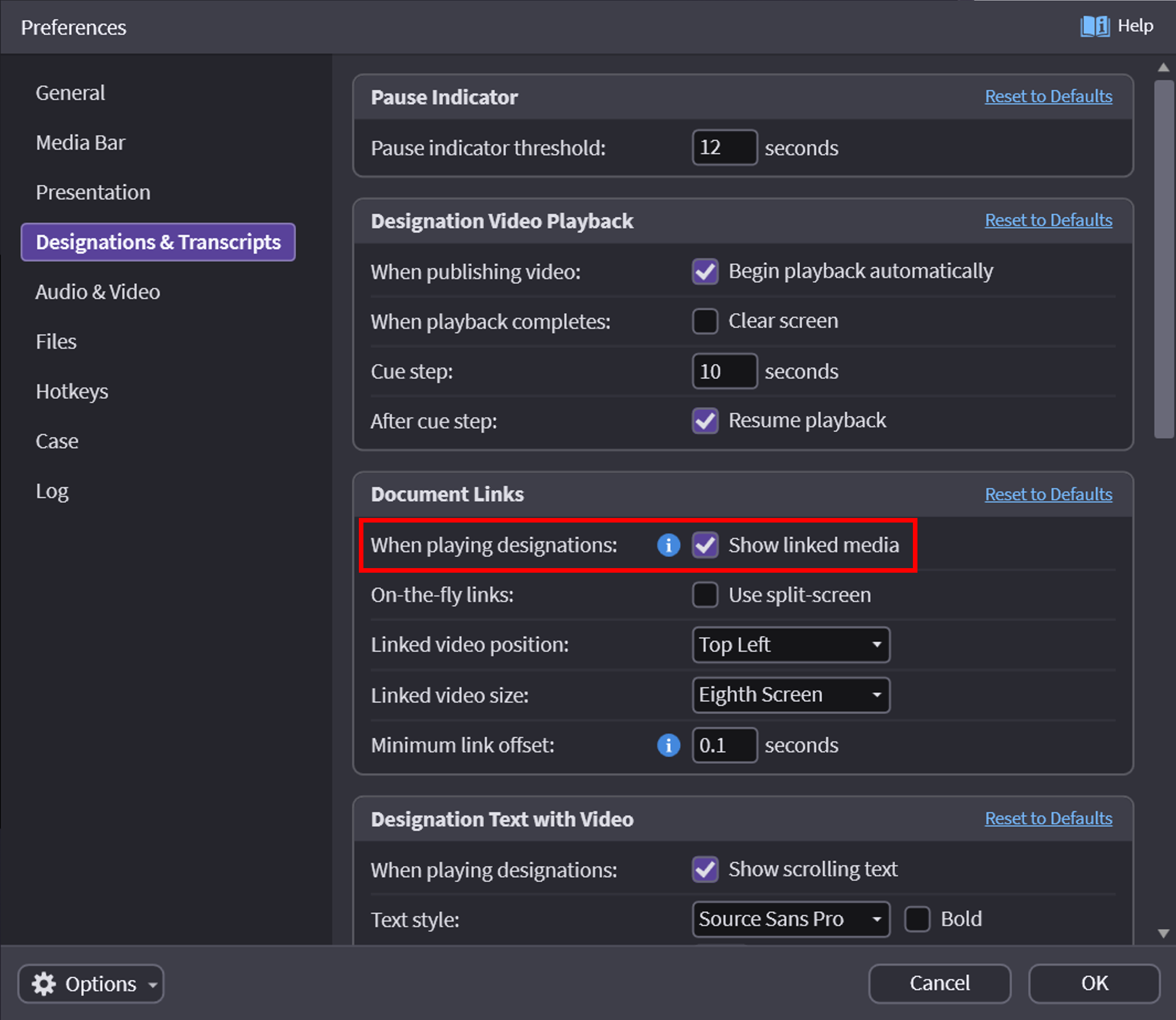 The judge rules right before it's time to play a designation list and you want to be sure that no linked documents display while playing in Presentation?