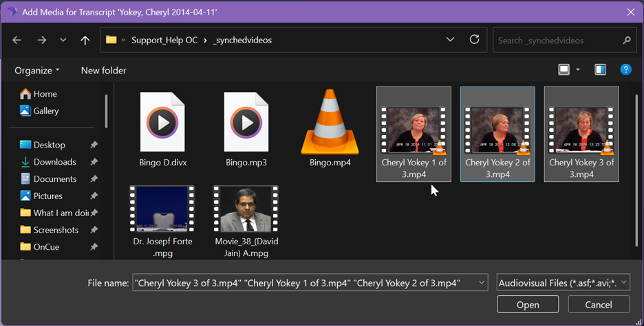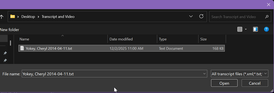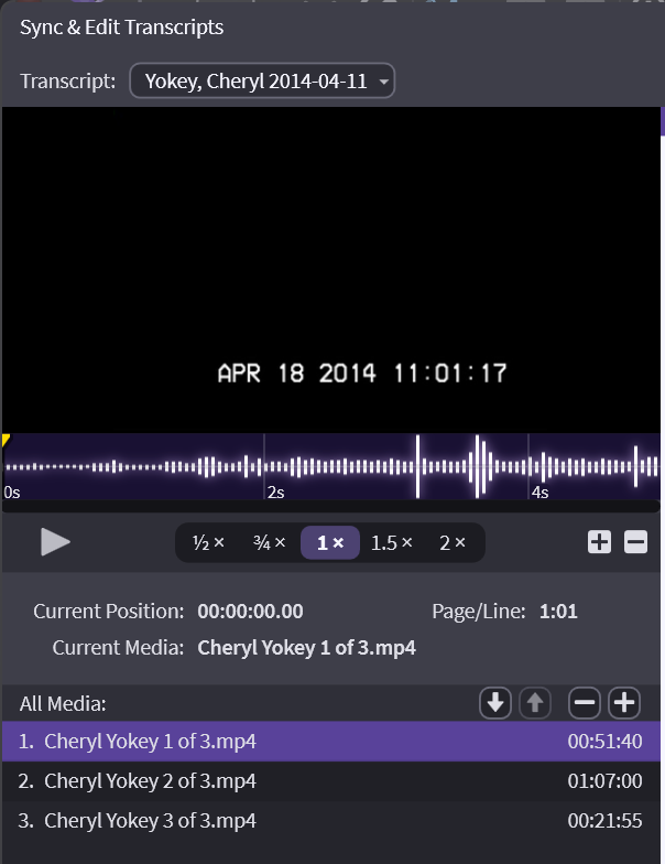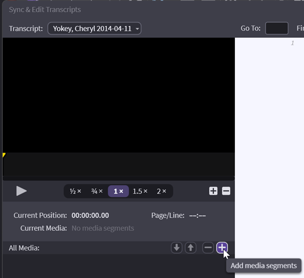 Choose the transcript you want to sync and make sure the video you want to use is in the _synchedvideos folder. Select Add media segments – you can choose all of them at once.