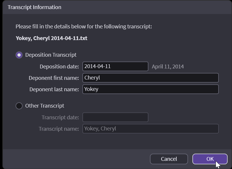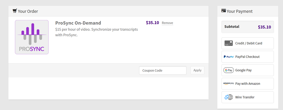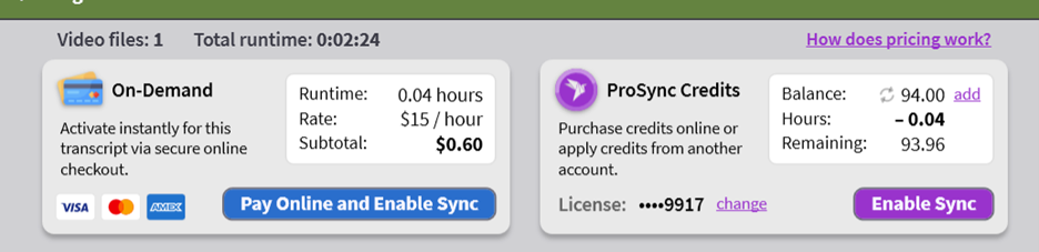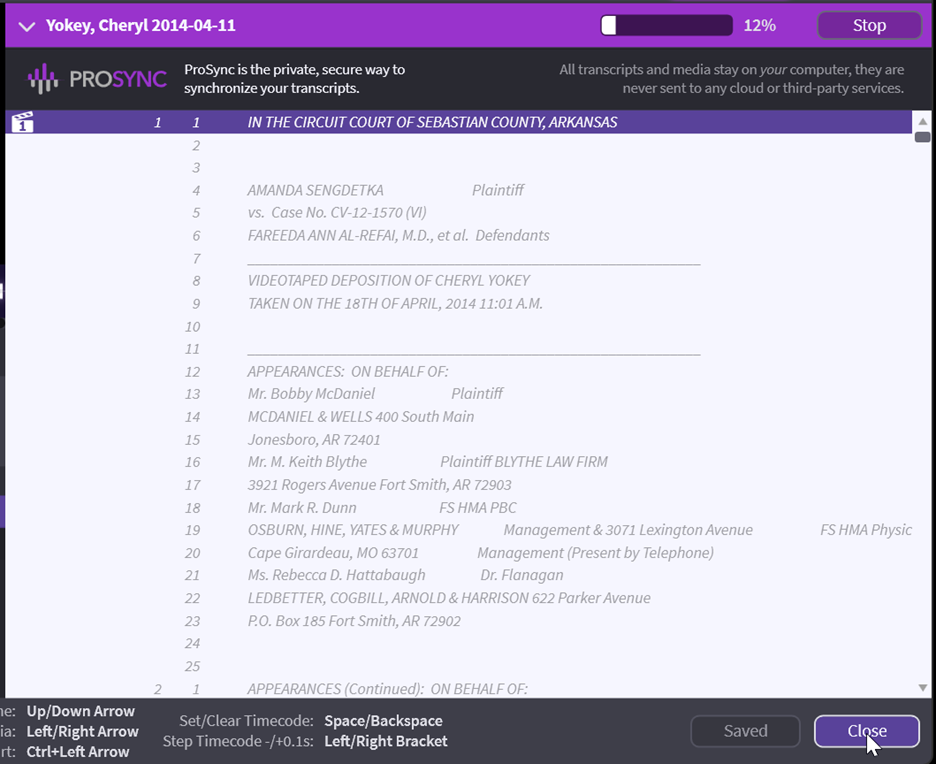 OnCue will sync your transcript with your video – depo or other audiovisual locally. It does not load any materials to a website. This is all done on your computer. The more powerful the computer, the faster your video will sync. You must have an active OnCue license to use ProSync.