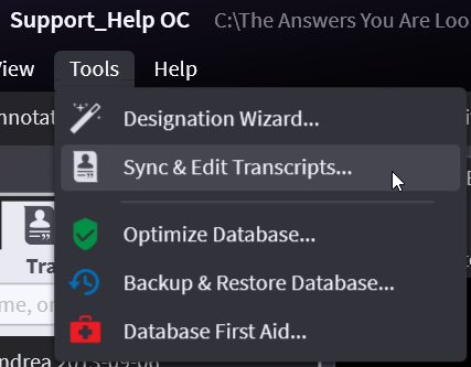 On the menu, select Tools and then Sync & Edit Transcripts