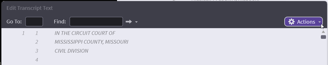 Shift Line Numbers - This shifts line numbers for the entire transcript backwards forwards. This is not recommended unless you really know what the issue is. Often line numbers are out of alignment with the sync files because a rough transcript was synced and the official transcript now has more or less words per line. This means that line number shifting can vary in a transcript and is not a set number.