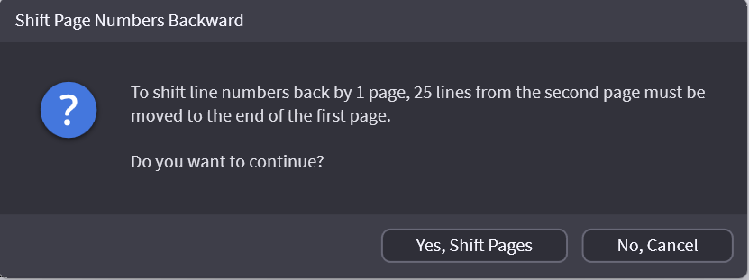 Shift Page Numbers - This shifts page numbers for the entire transcript backward or forward.