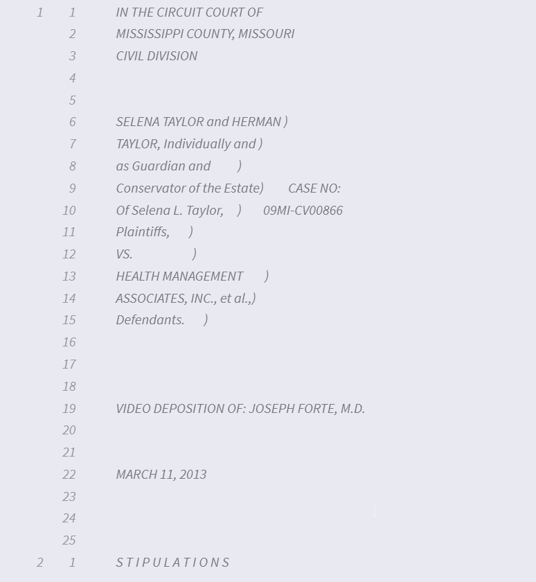 Backward... Have designations that say testimony starts on page 8 but on your version of the transcript they start on page 9. You both have transcripts that start with page 1? Using shift backward to keep page 1 and adds all the lines from original page 2 to page one. Making the beginning of page 2 your original 3. Pictures make is clear.