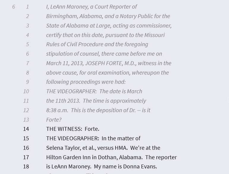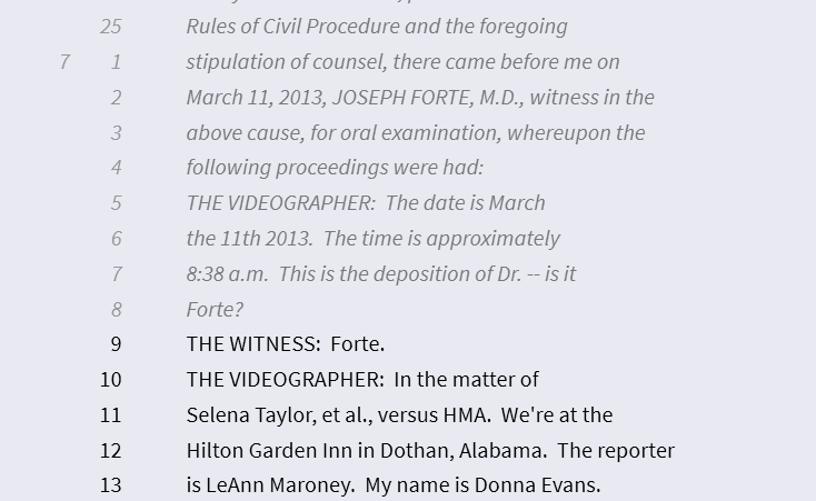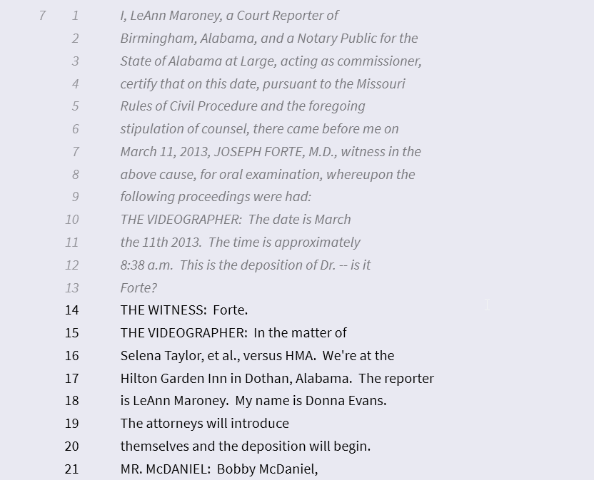 This picture is of page 7 where the testimony starts. Notice the testimony starts on line 14.