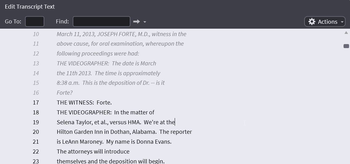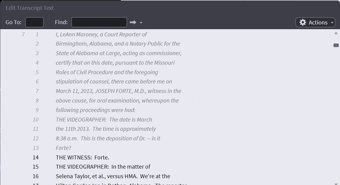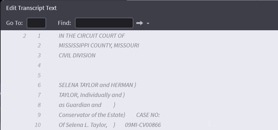Transcript Page and Line Edits